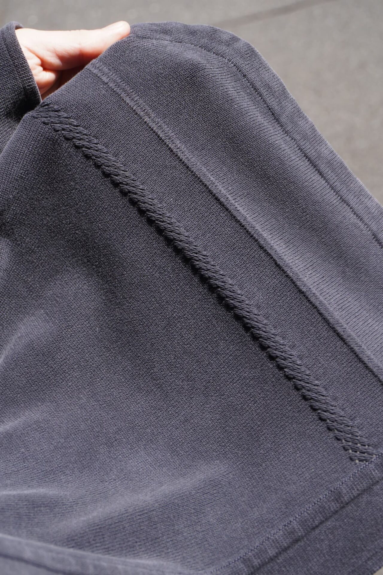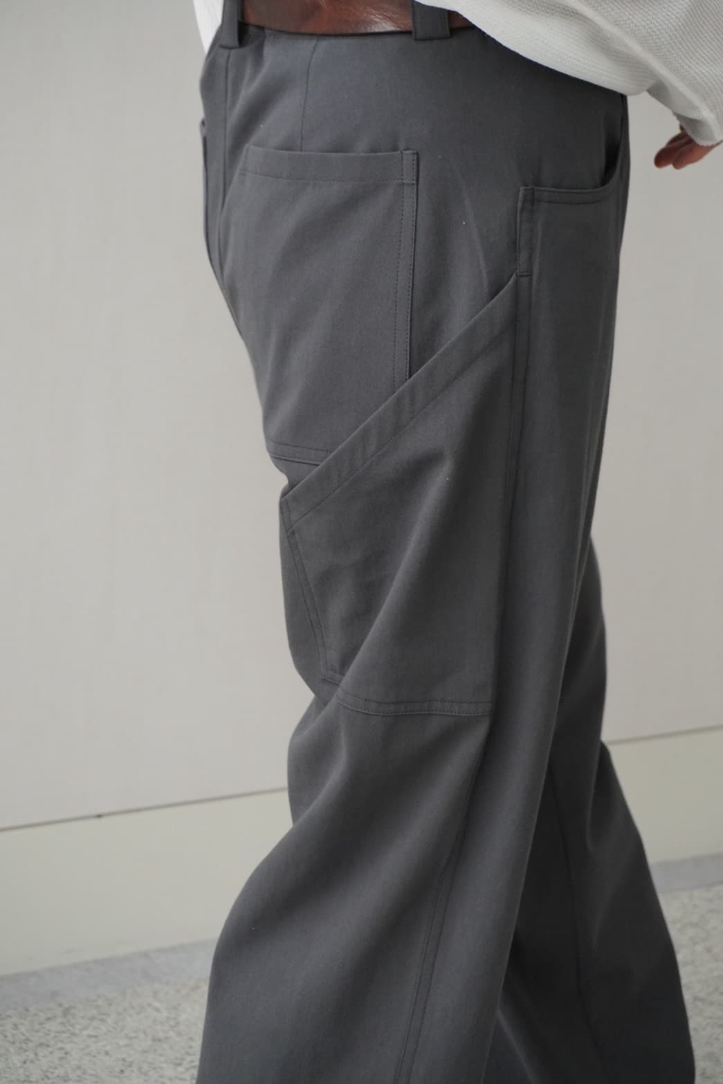 見た目は昨年AWでも展開したスケーターズパンツに近いですが、こちらはコットン100%、その上で履いてみると細かいシルエットやそのディテールの違いに気付かされるはず。