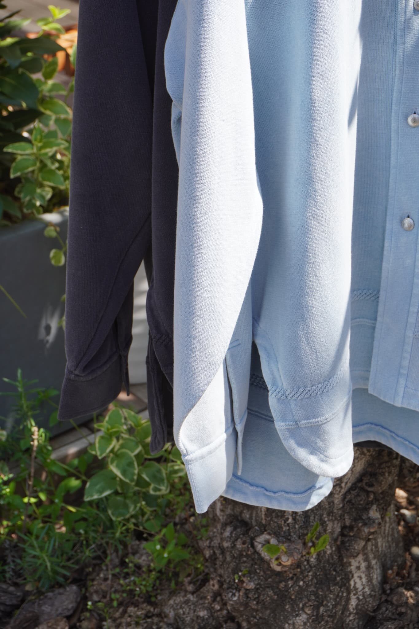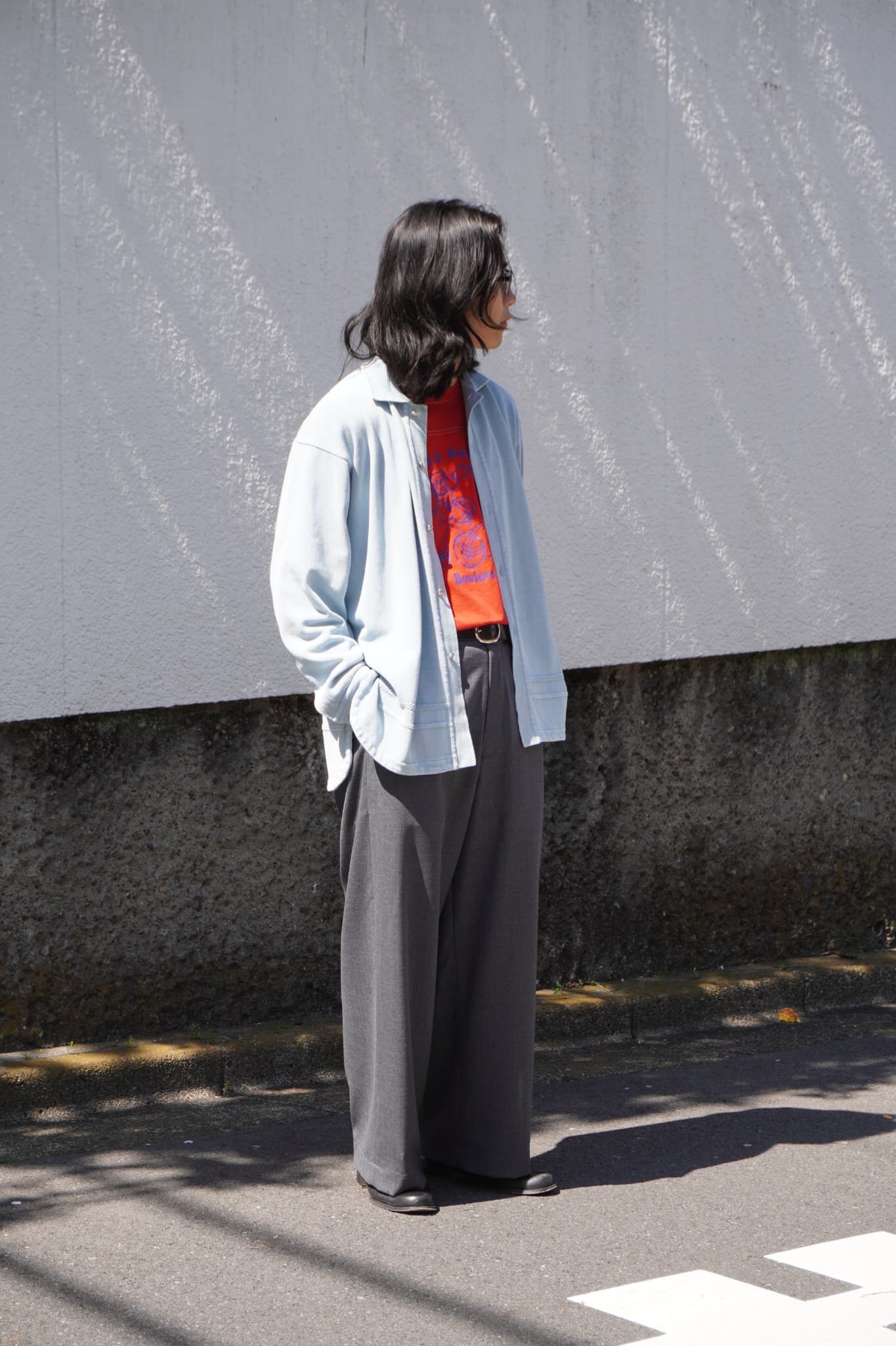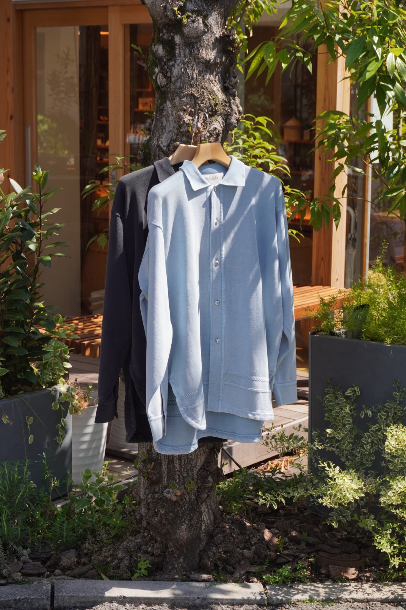 定番の縮みコットンを使用したETERNAL SHIRTも他にはない生地感、澄んだカラーリングがブランドらしく、好きです。