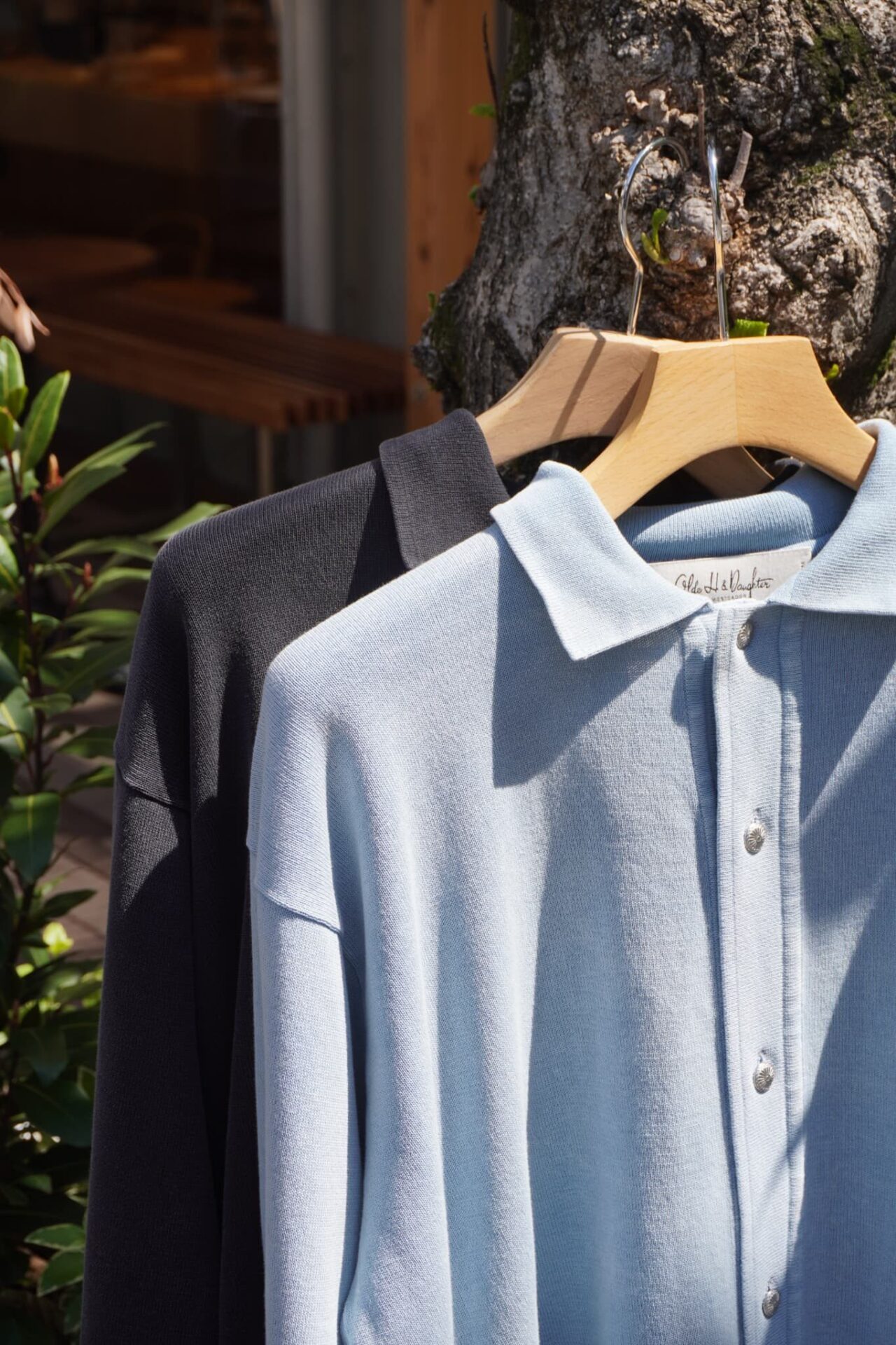同素材で度詰めされたクルーネックタイプもありましたが、夏、もしくは夏手前まで提案したい願望があり、迷った挙句、当店はこちらのみのオーダーにしています。