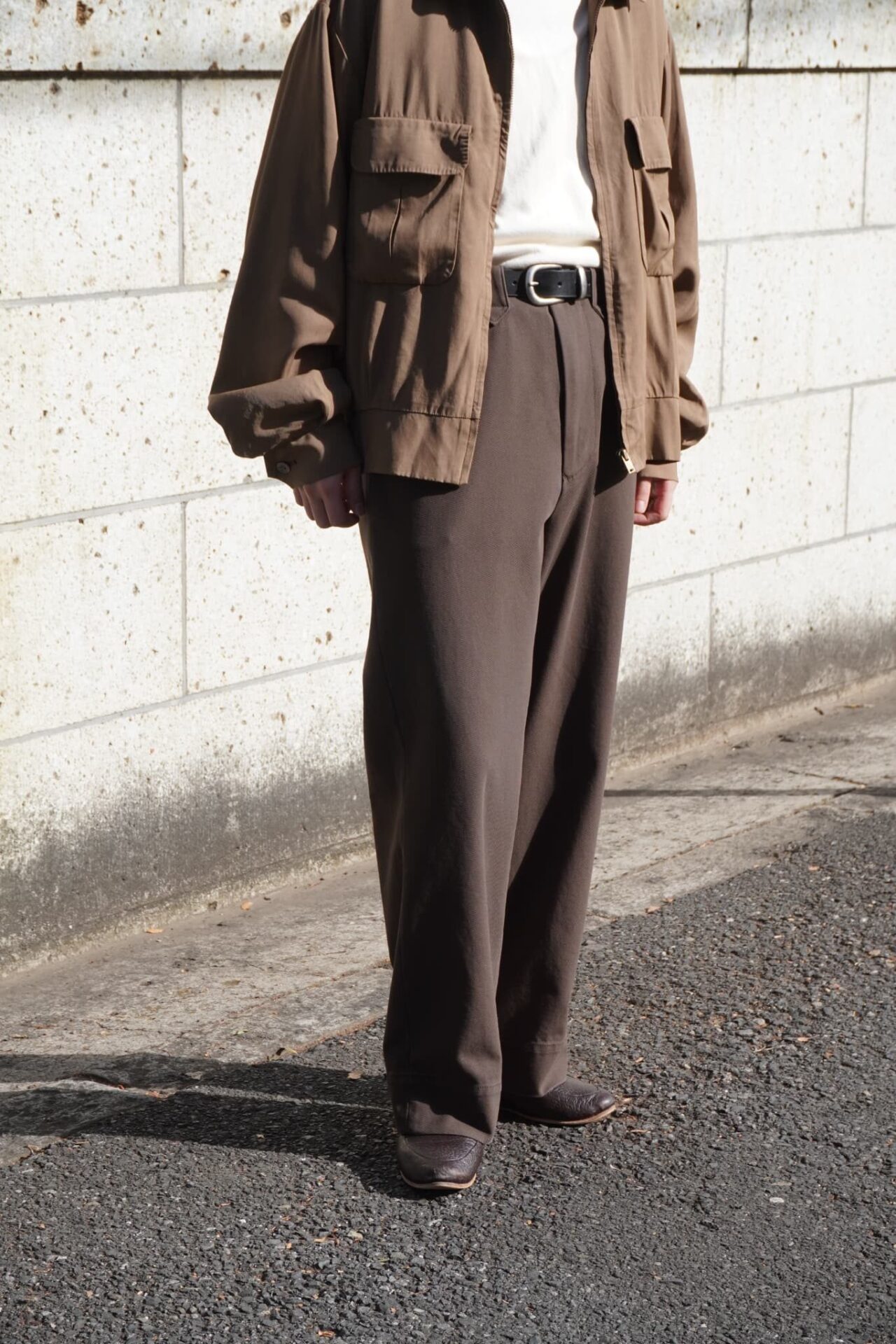 見た目は昨年AWでも展開したスケーターズパンツに近いですが、こちらはコットン100%、その上で履いてみると細かいシルエットやそのディテールの違いに気付かされるはず。