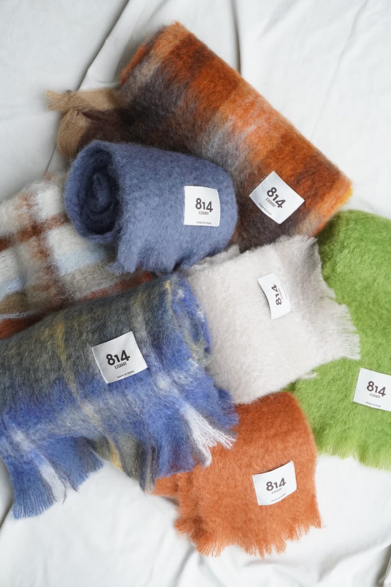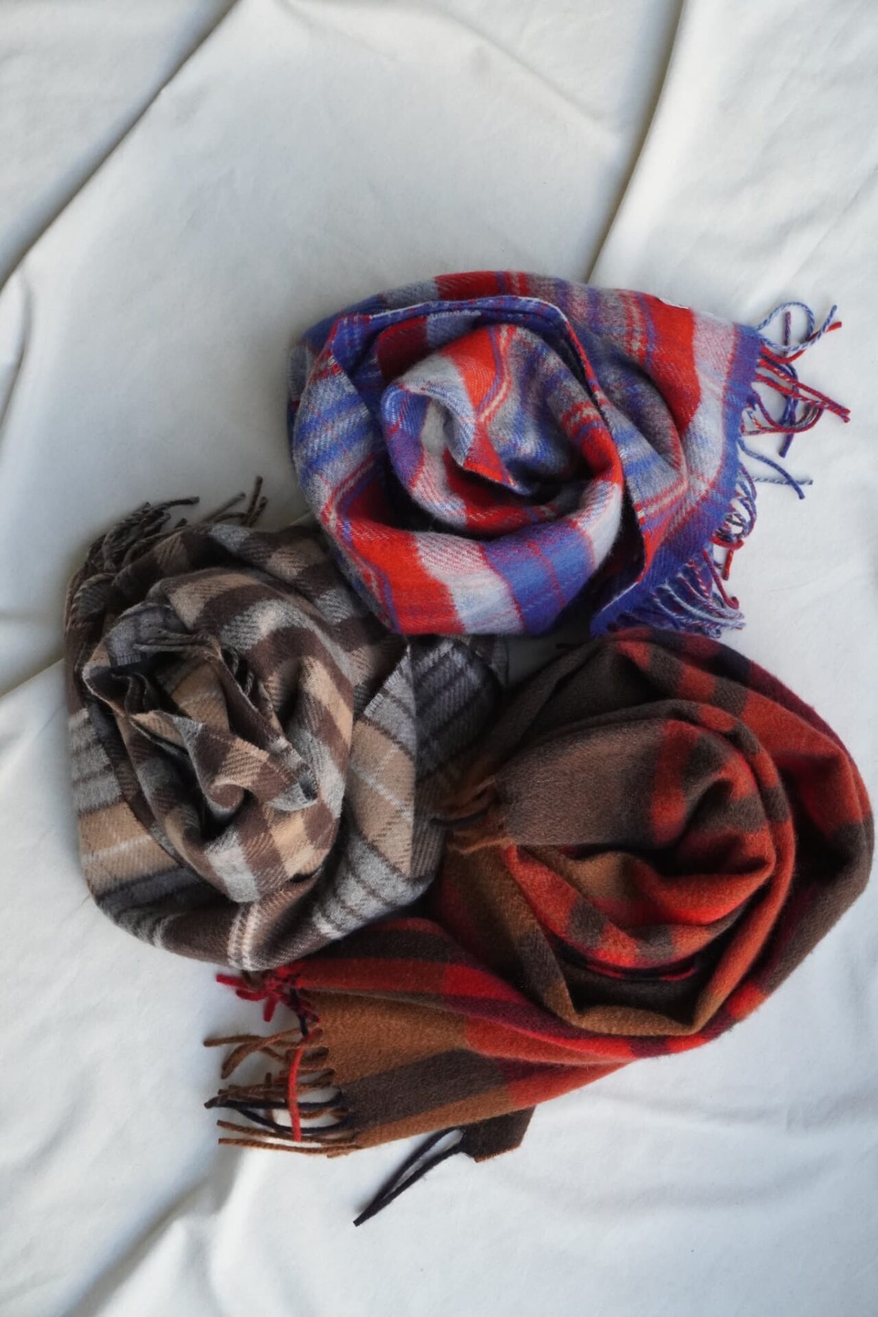 BROWNãšBLUEã®2è²ã¯ãã«ã·ãã¢æ··ã®ãªããŒã·ãã«ä»æ§ã§ãäž¡é¢ã§ãã§ãã¯ã®æãéããããæ§ã ãªå·»ãæ¹ã§ãã§ãã¯ã®åºæ¹ã楜ãããã®ãé åã