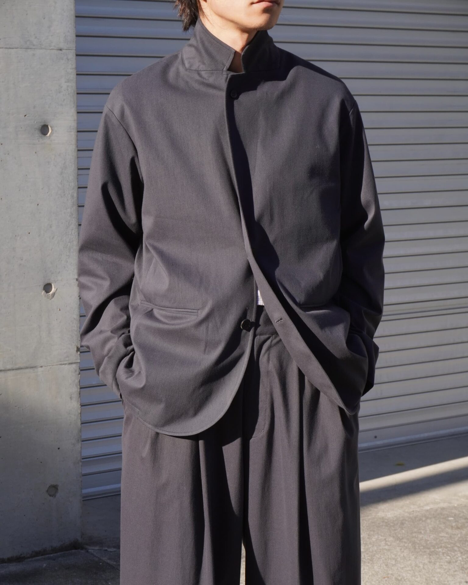 ジャケットは程よいルーズサイズのボックスシルエットを採用。
