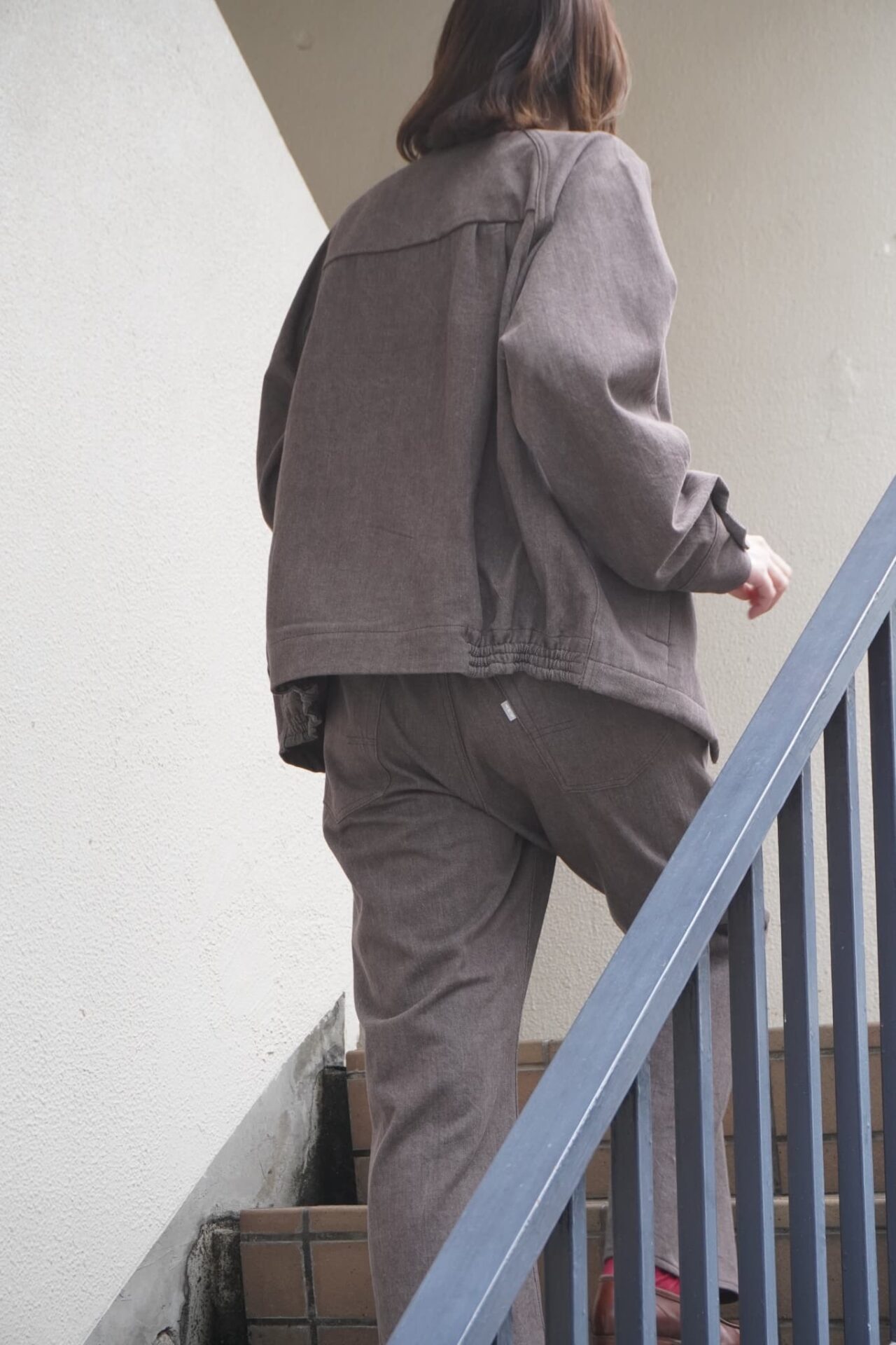パンツもトラウザーの設計に寄せ、センタープレスを施すことで綺麗なシルエットが堪らない。