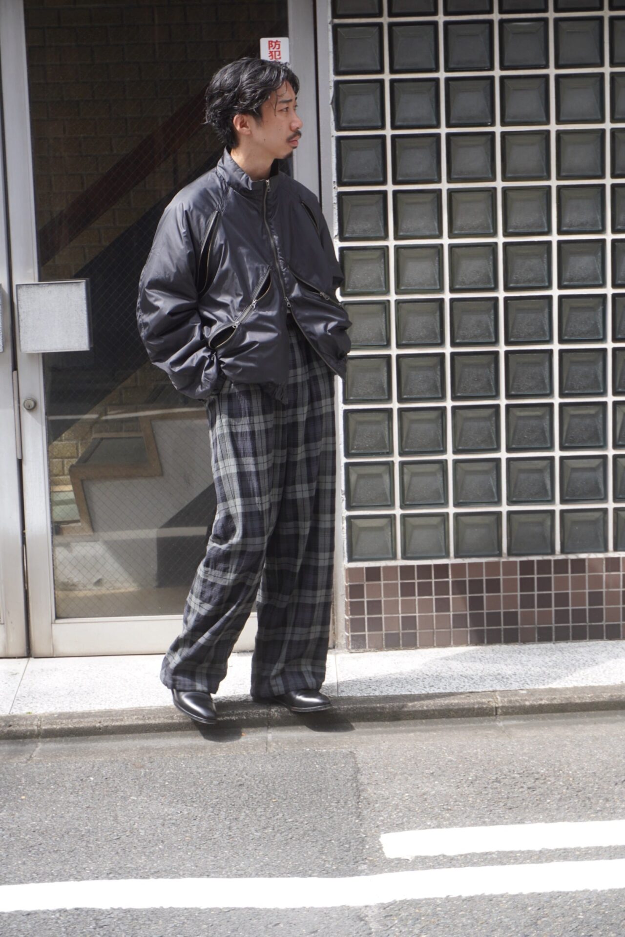 生地はUNIVERSAL PRODUCTS.定番のノータックチノと同じ素材を使用していますが、シルエットはぐっと今っぽく、太めに。