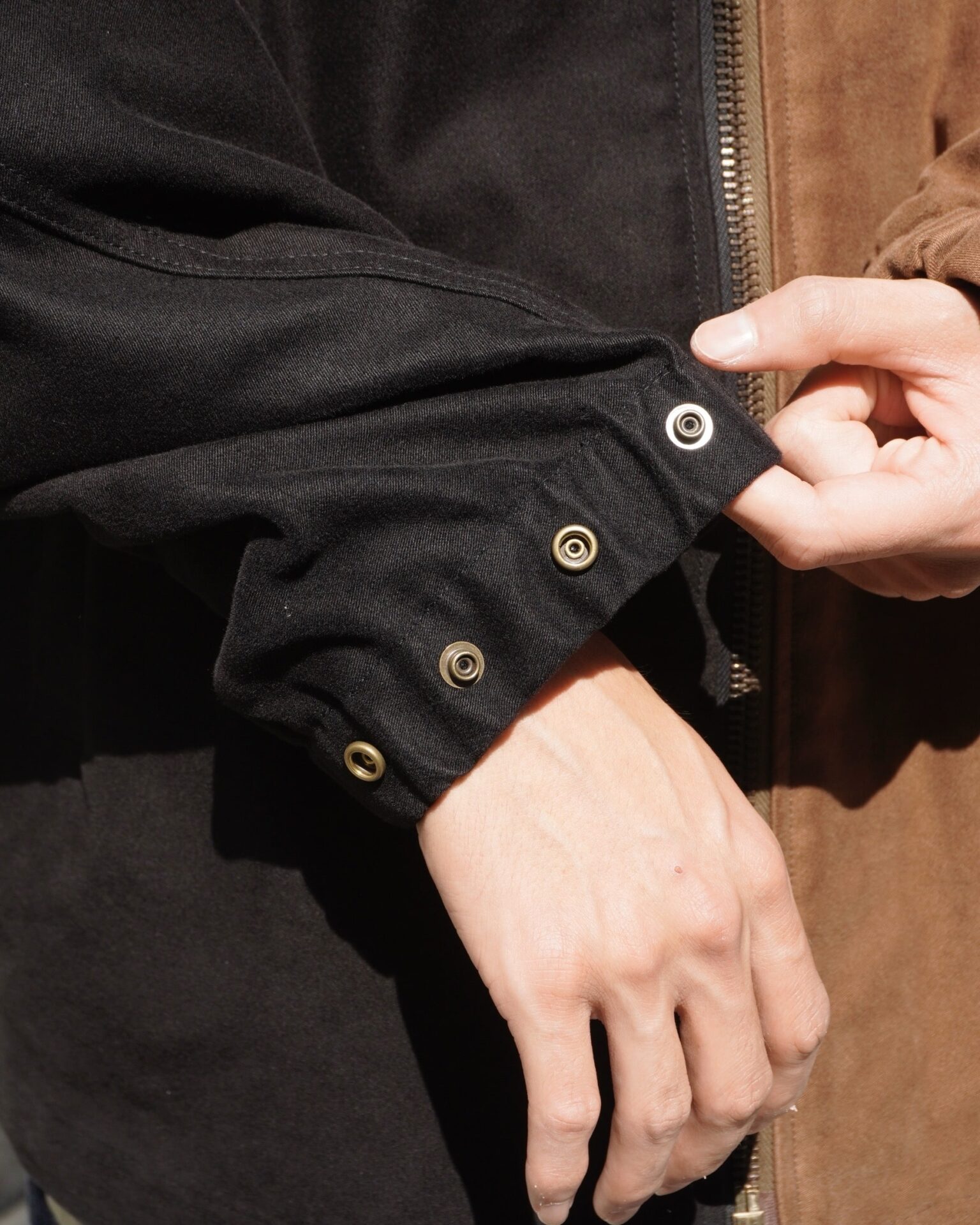 このモデルのサンプリングソースは、M-65のライナーに見られるアームホール底の通気性の為の開きから着想。
