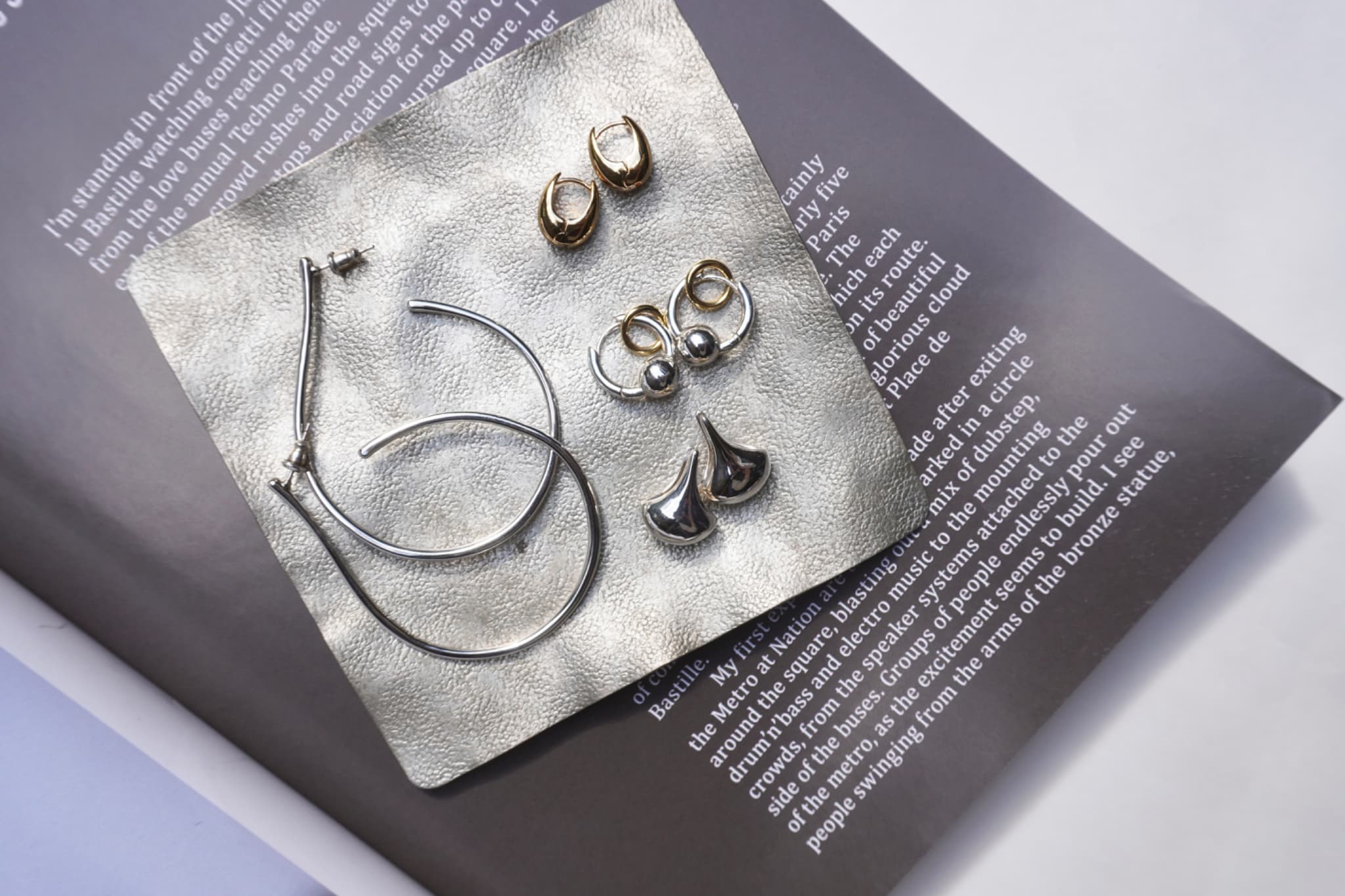 耳元には小さなフープや異なるモチーフをさりげなく。