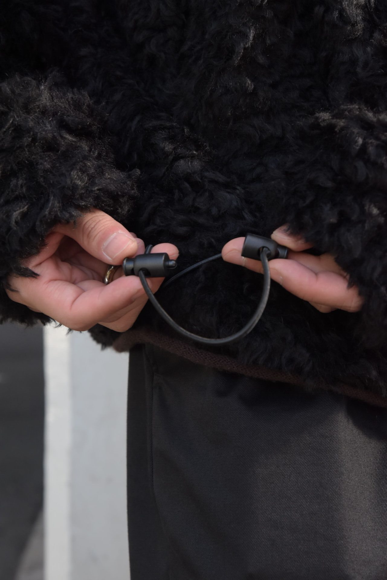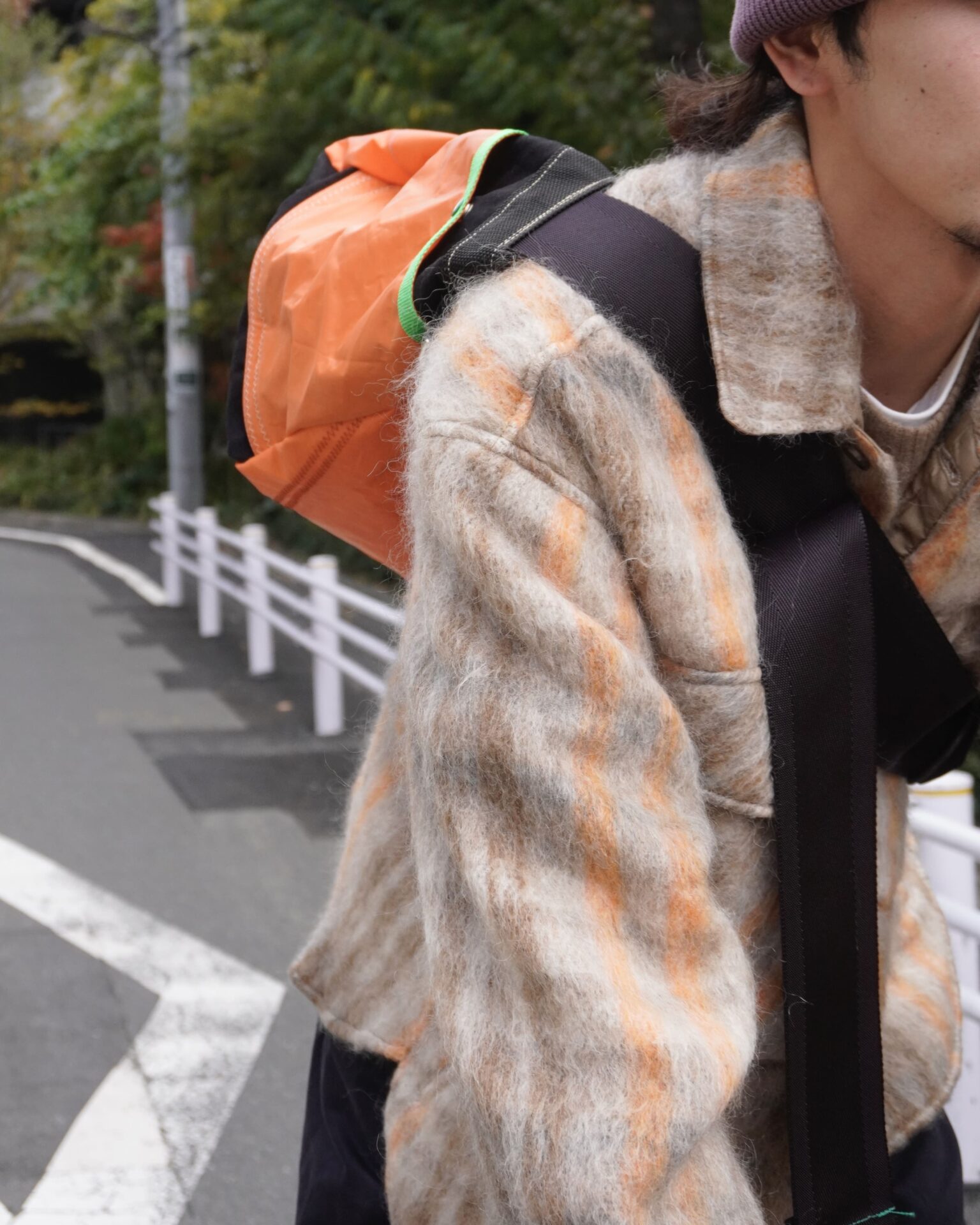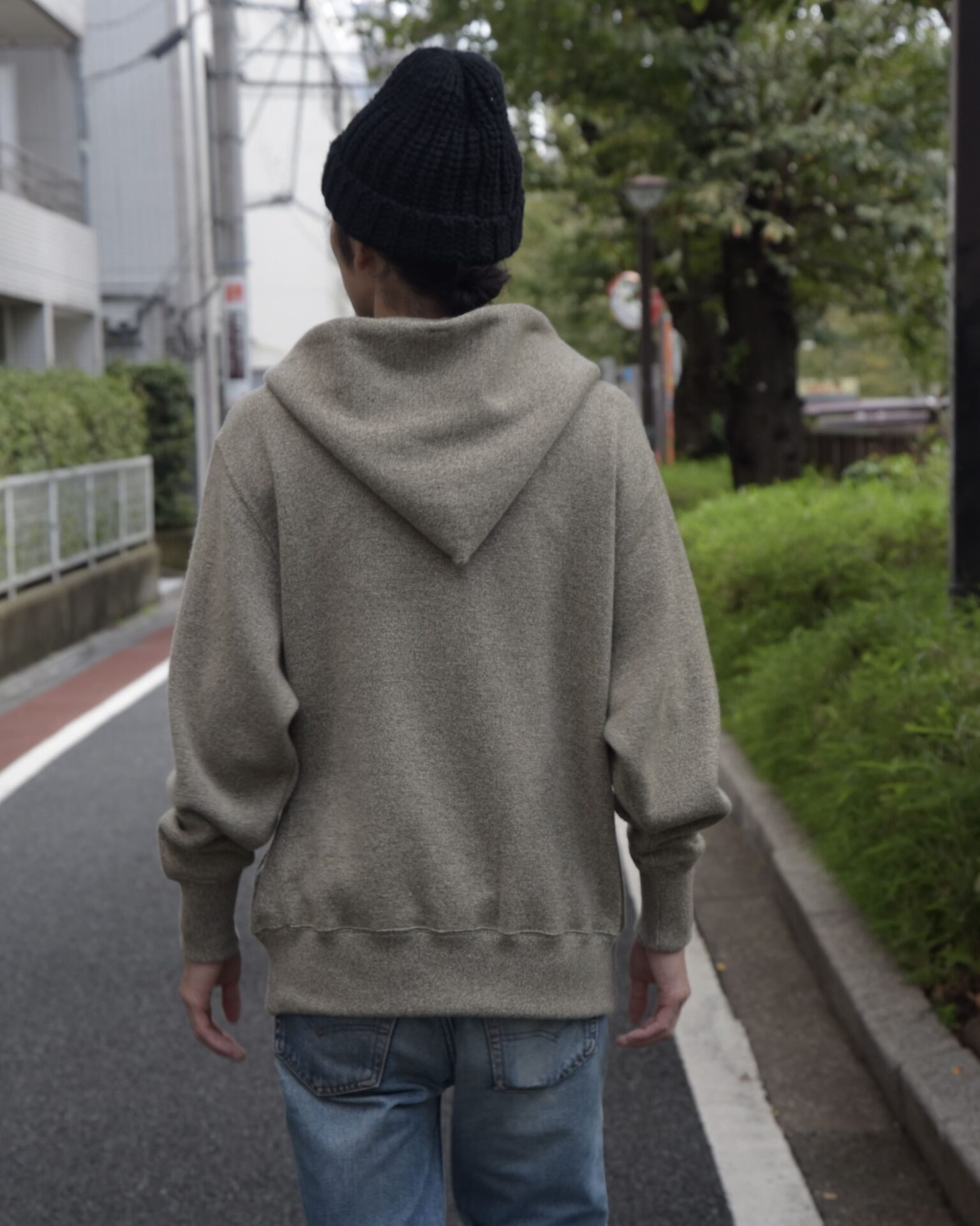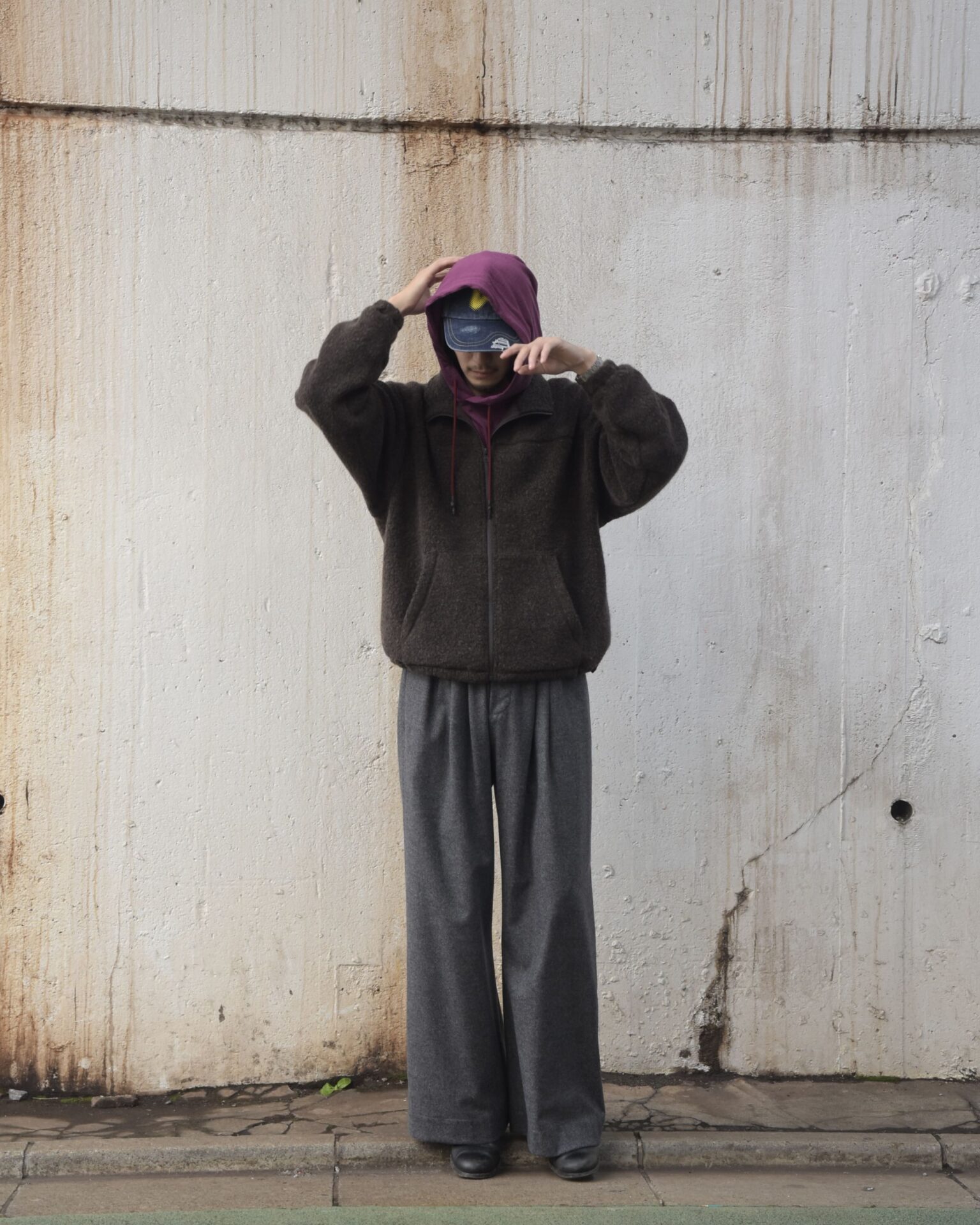 あんまり僕は信じていないですが、簡易な裁断だったが故に先が尖り、こんなユーモアのある形として知られていくこのフードが可愛らしく、仮にブルゾンを羽織ったとしても大胆に頭をのぞかせてくれるだろうという期待にすら応えてくれる安心感。
