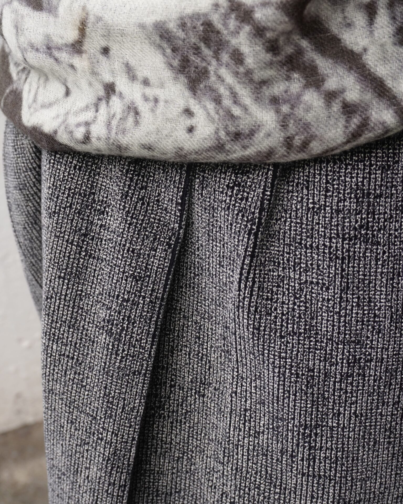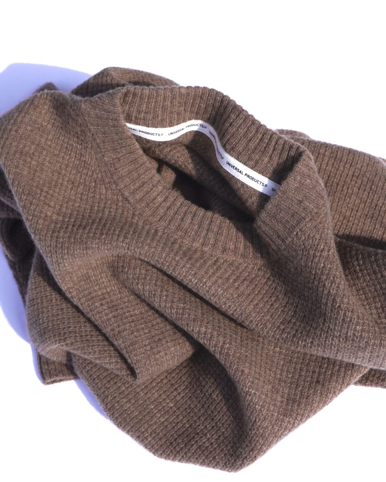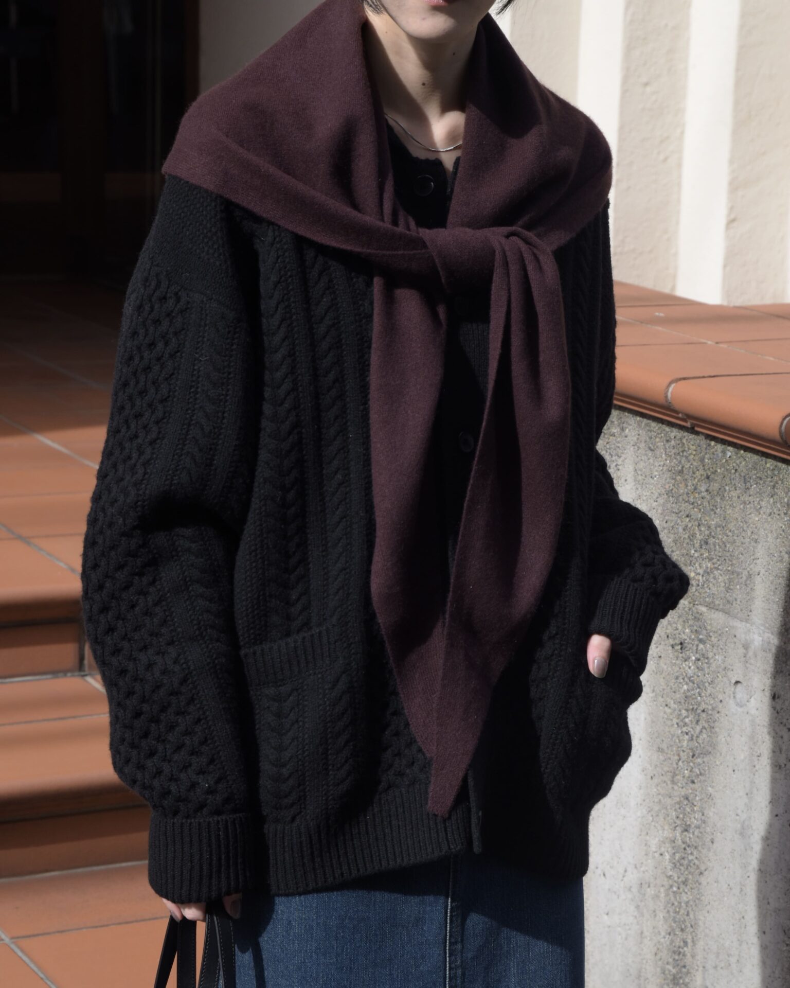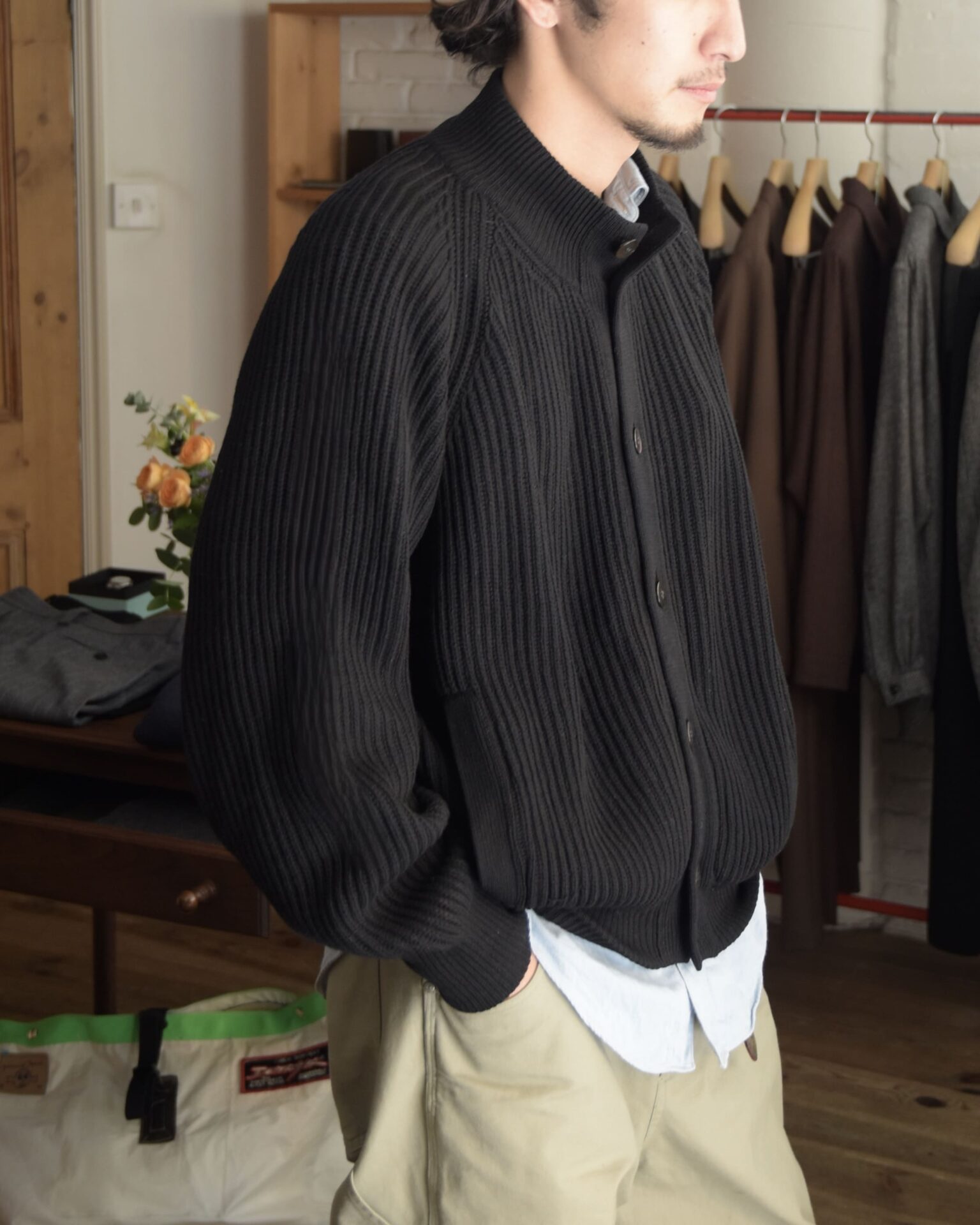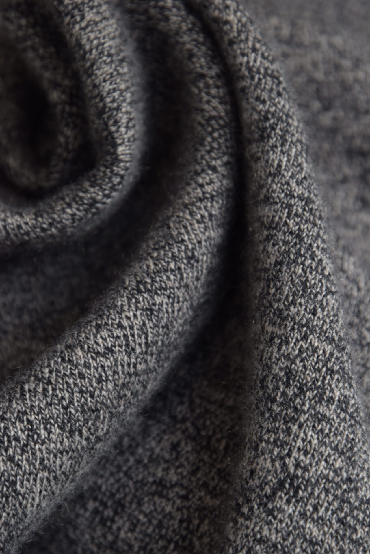 着続けていくと、ねじって編み込まれた生地感は無機質でのぺっとしたものから奥行きのある柔らかい表情へと変わり、着用するほどに空気を含み、ふわっとしたカシミヤ本来の姿に成長を遂げます。
