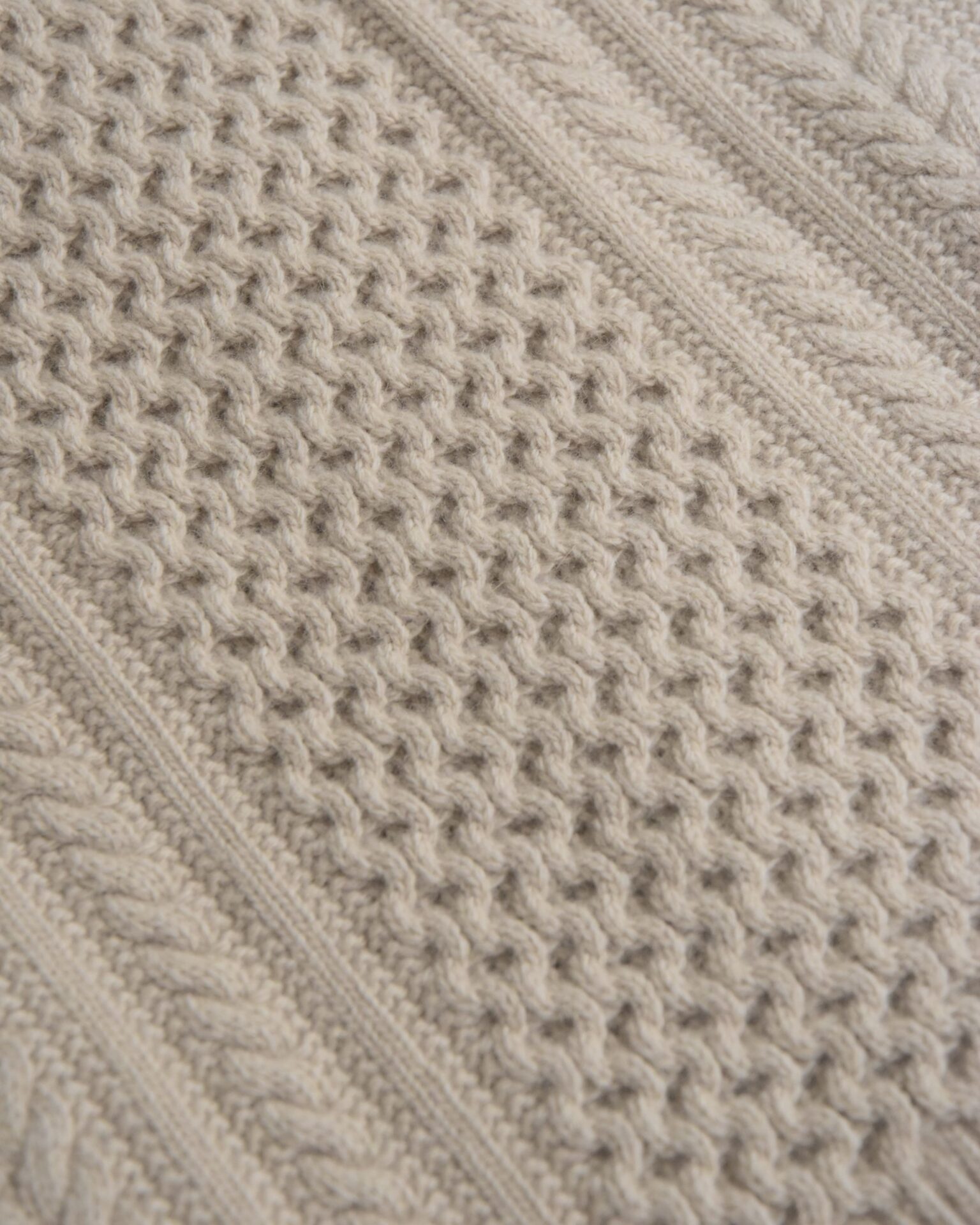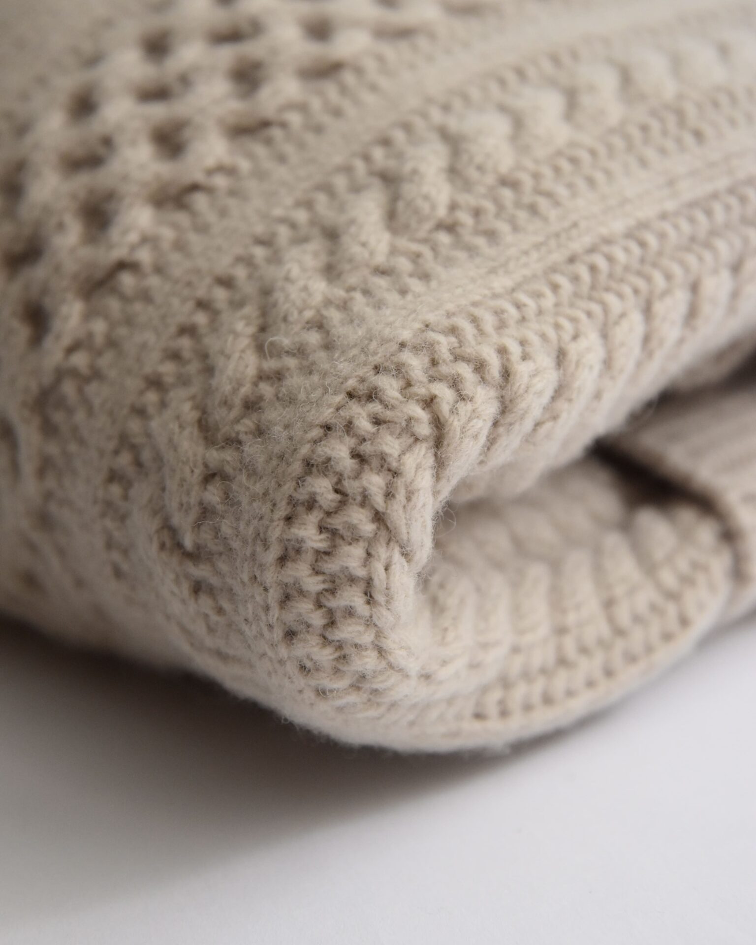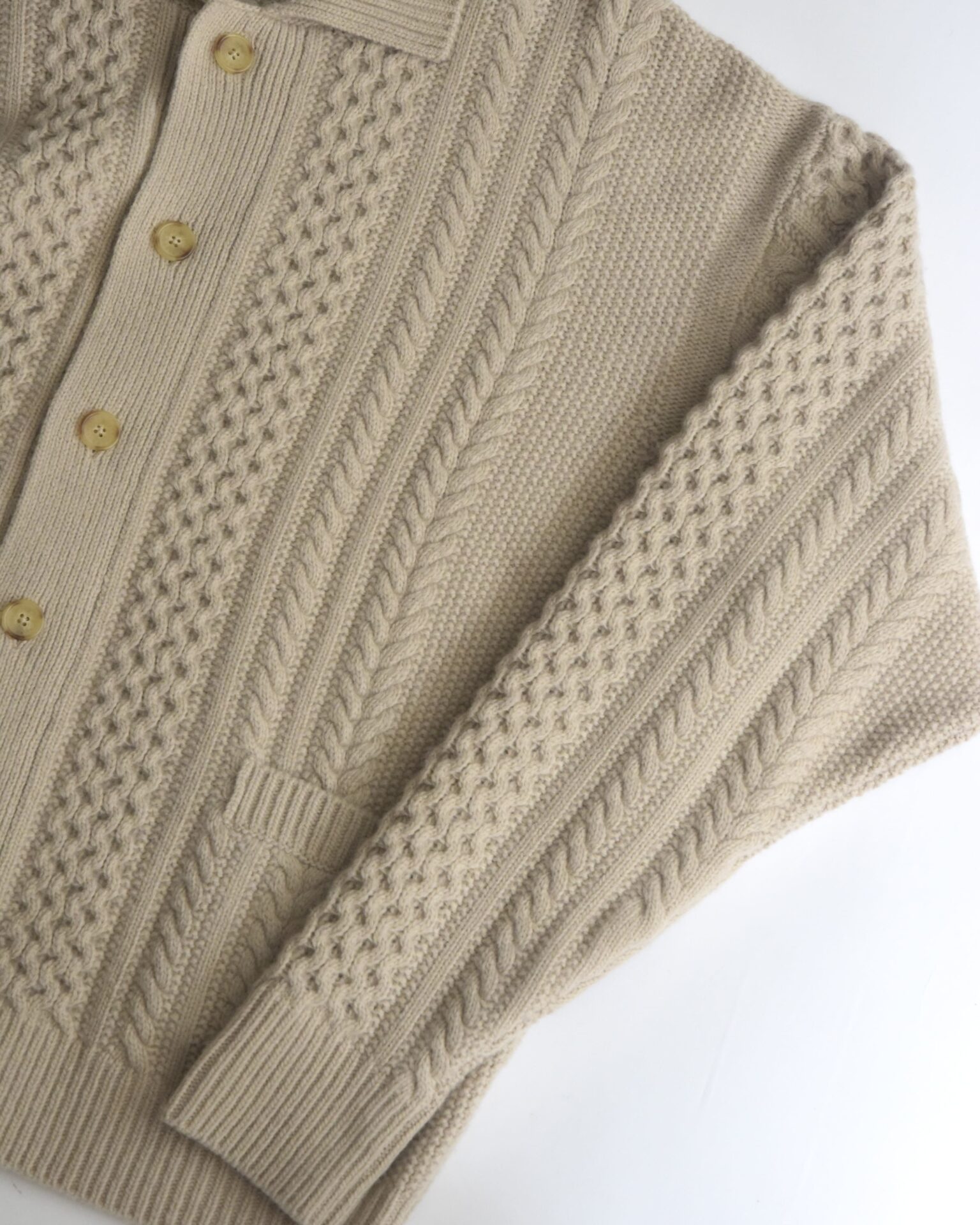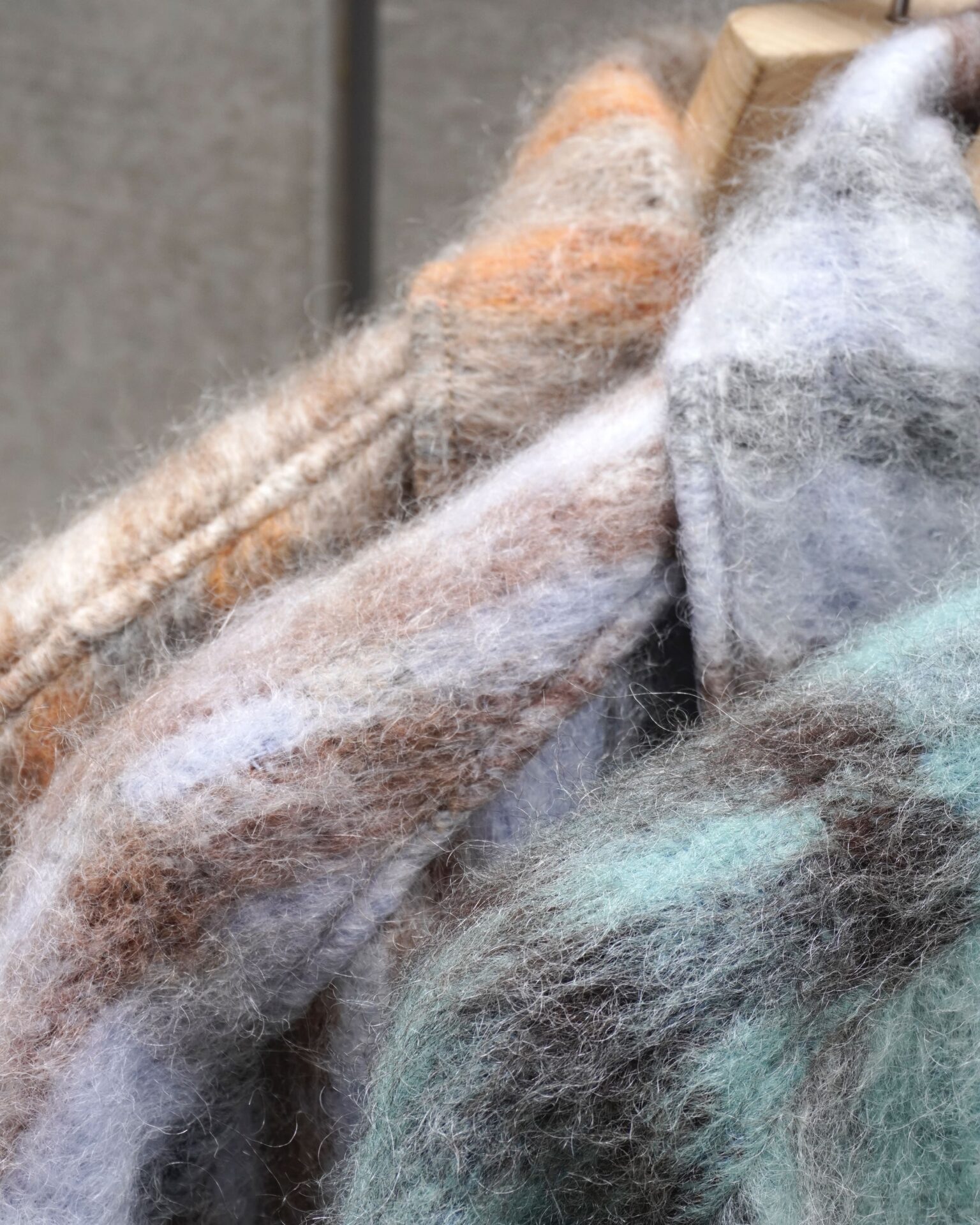 着続けていくと、ねじって編み込まれた生地感は無機質でのぺっとしたものから奥行きのある柔らかい表情へと変わり、着用するほどに空気を含み、ふわっとしたカシミヤ本来の姿に成長を遂げます。