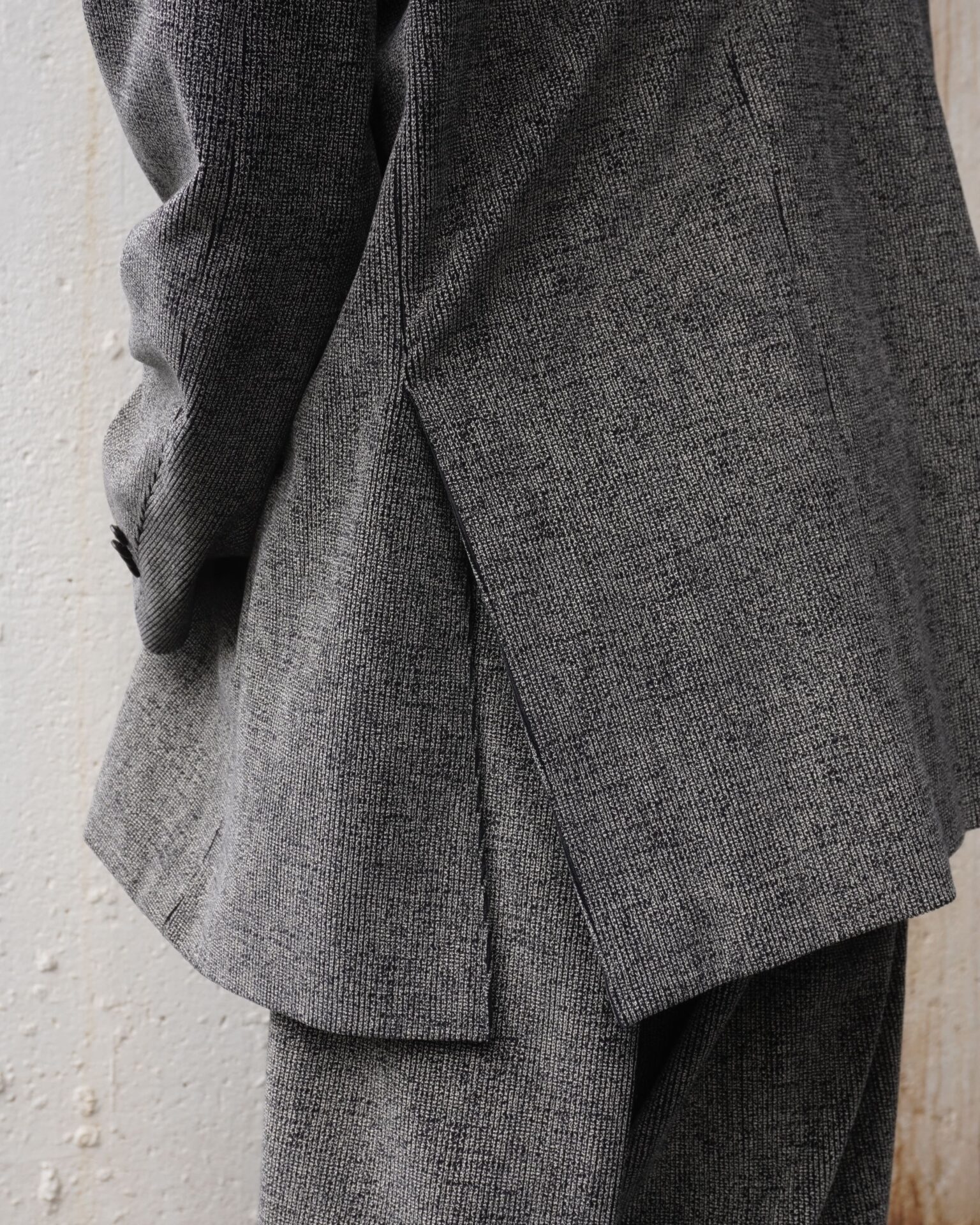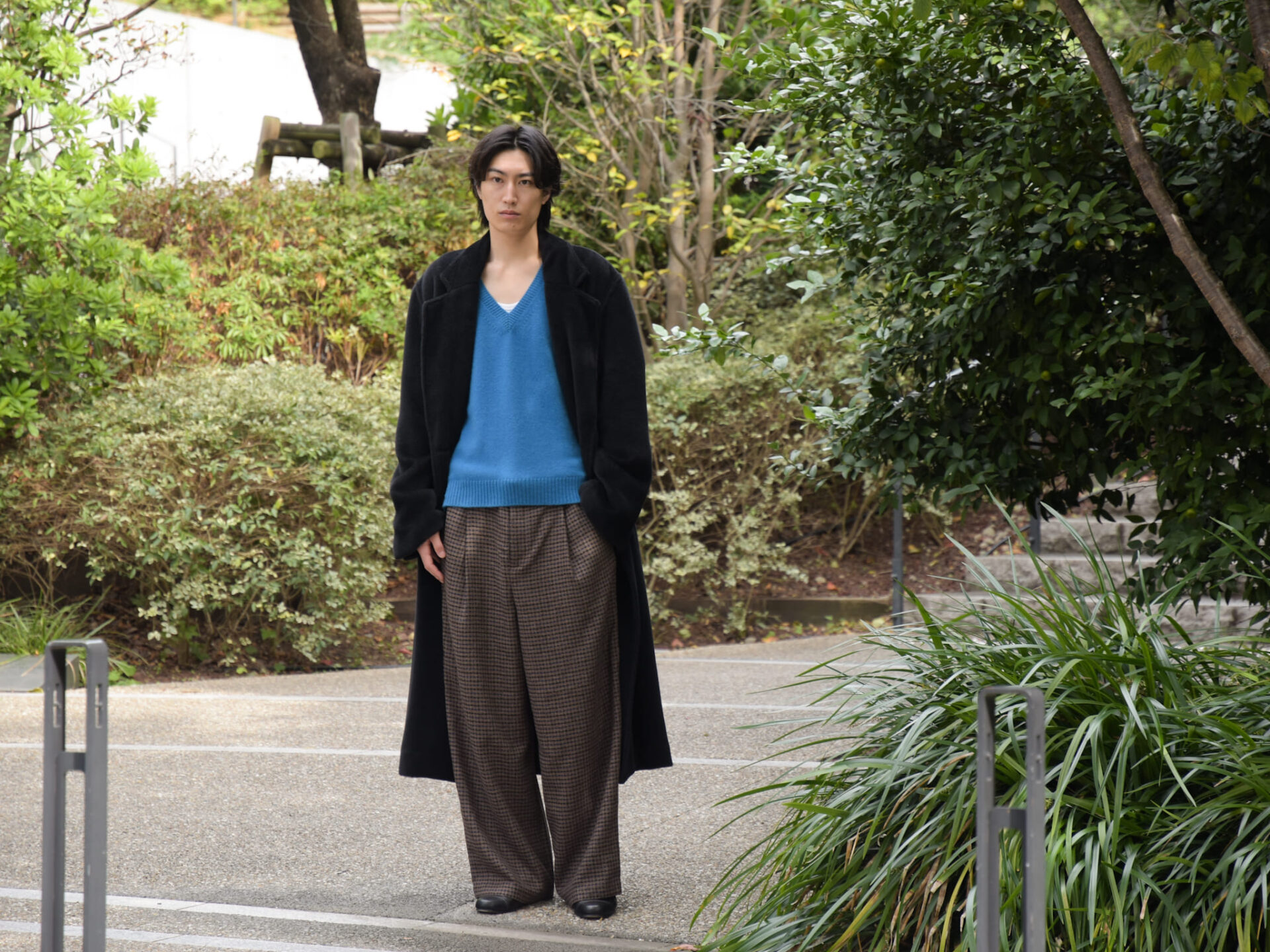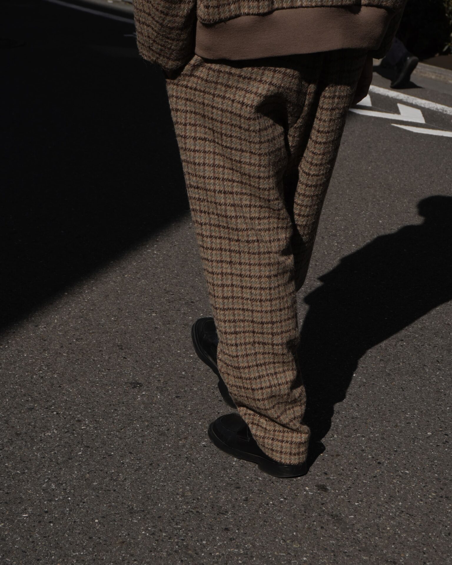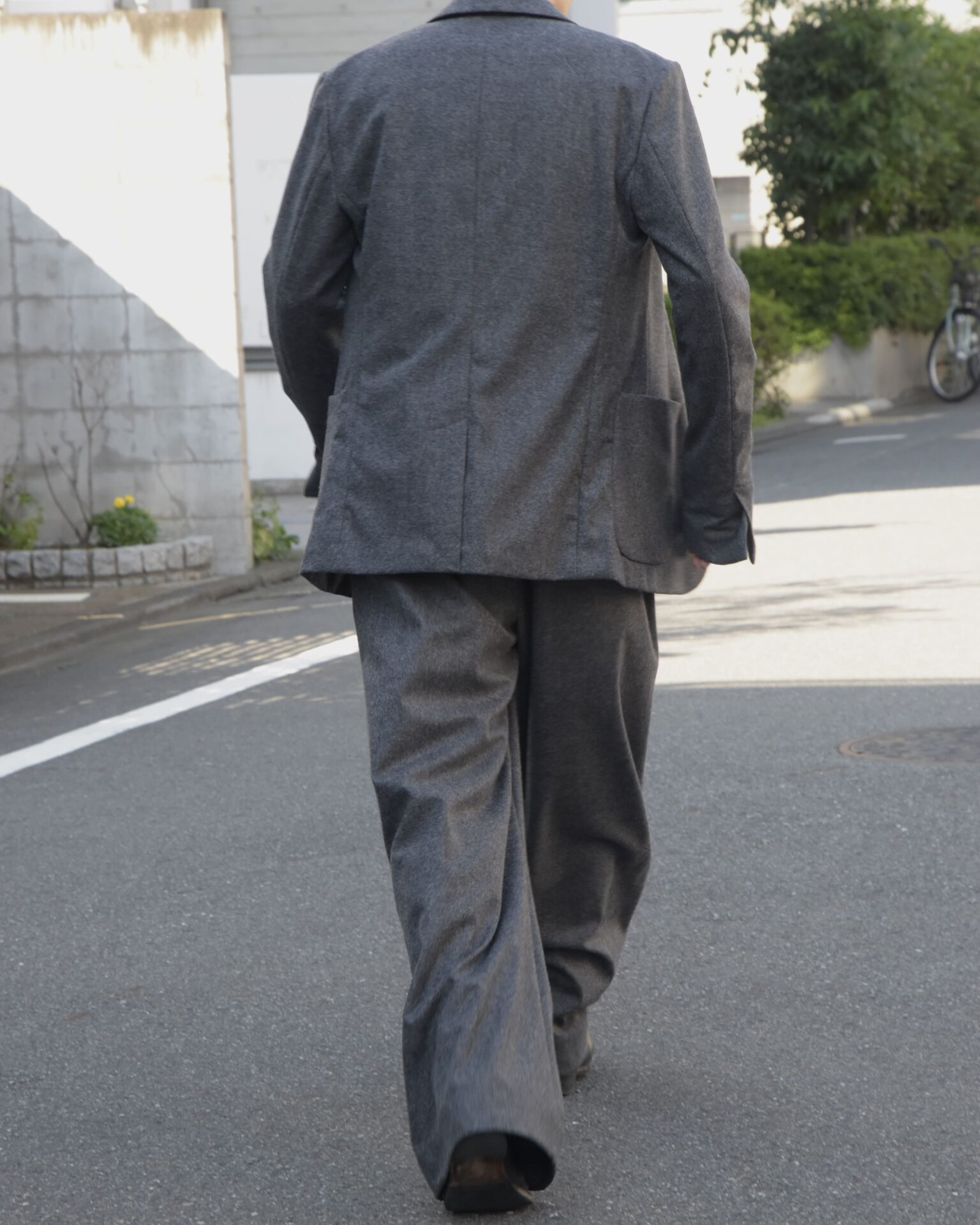 細かいですが、着丈は昨年よりもやや短め。トレンドらしいスッキリ感を漂わせ、パンツはできるだけワイドすぎず、デザイン性を抜きクリーンな面持ちながら季節感とニュアンスの合う生地選び。