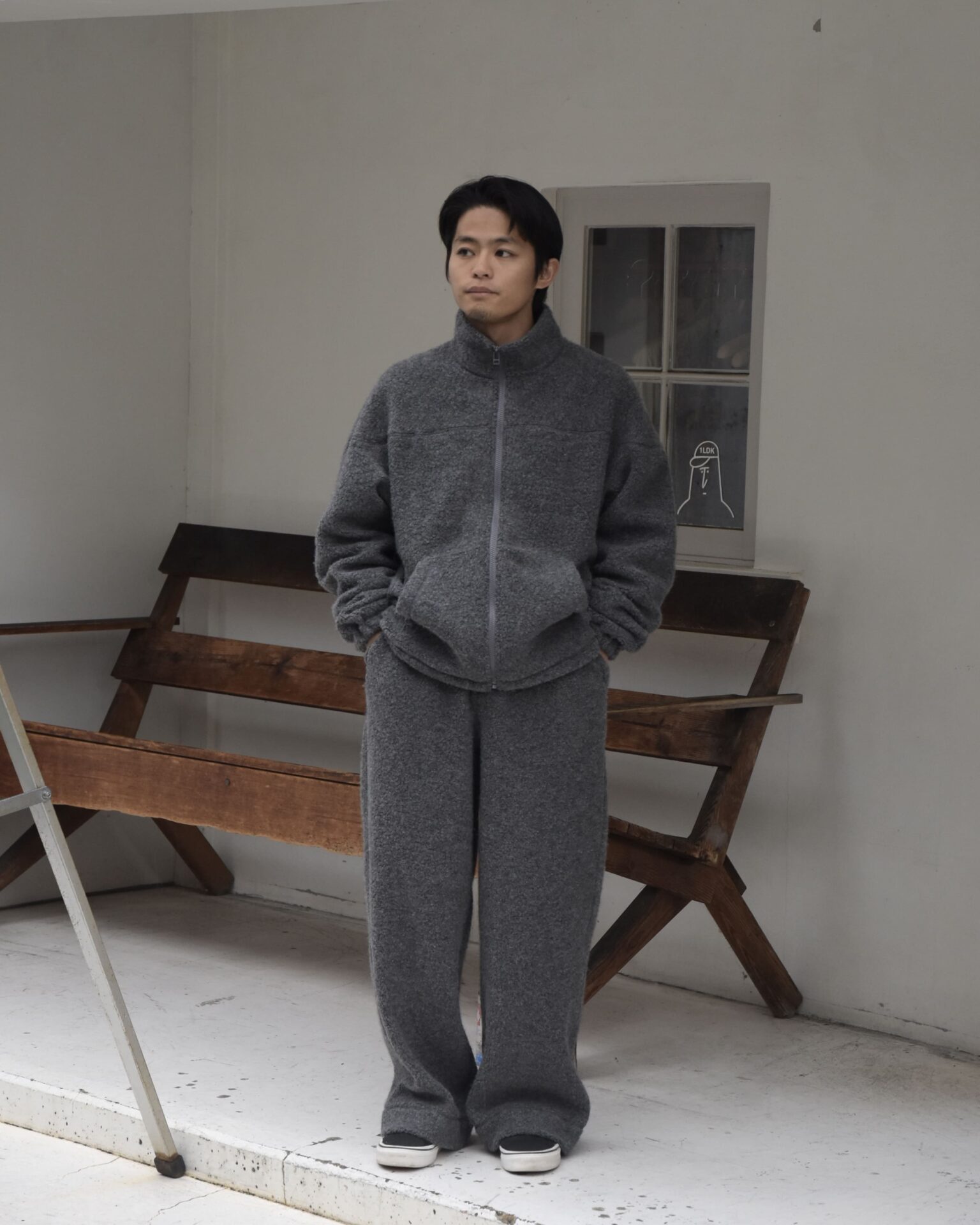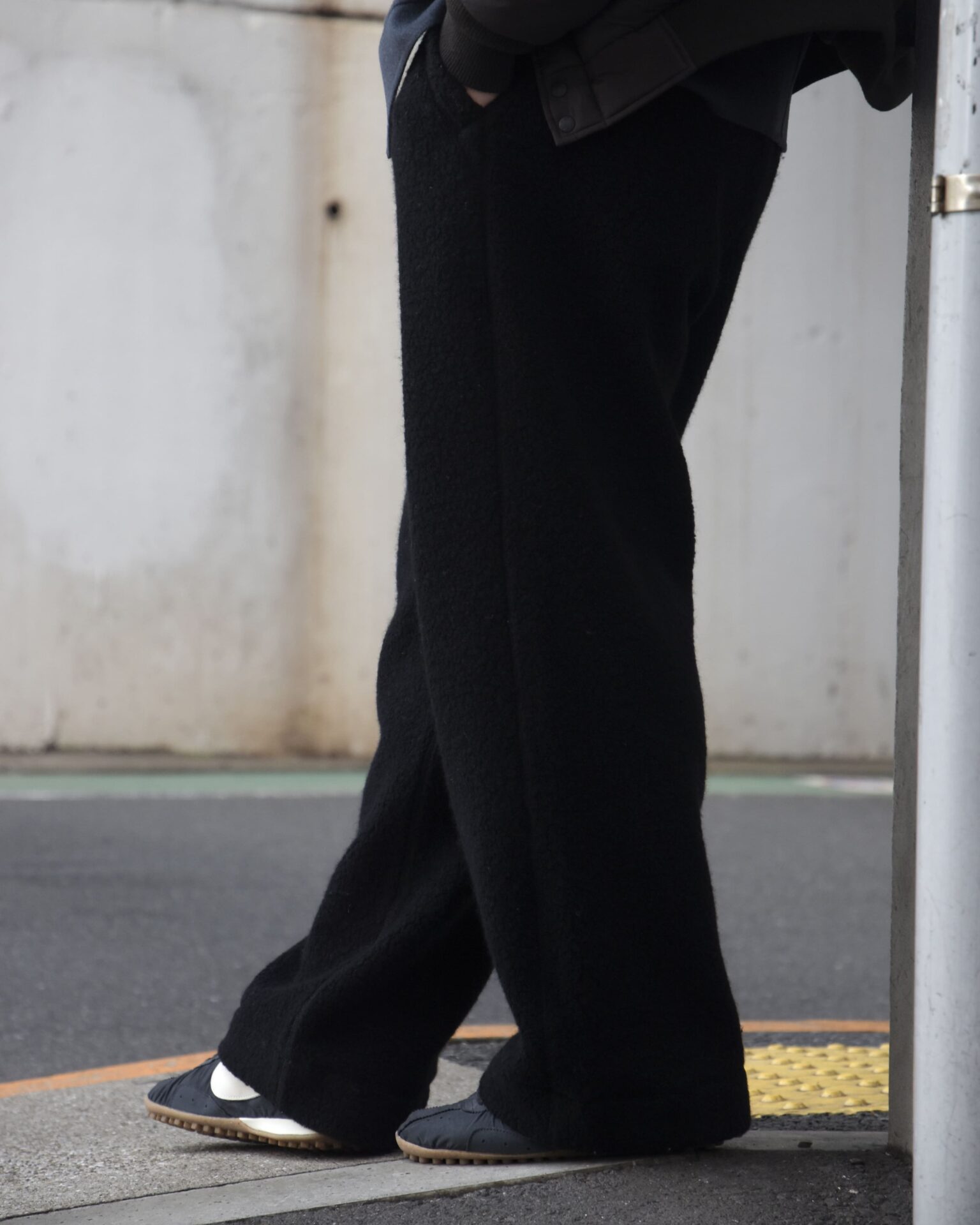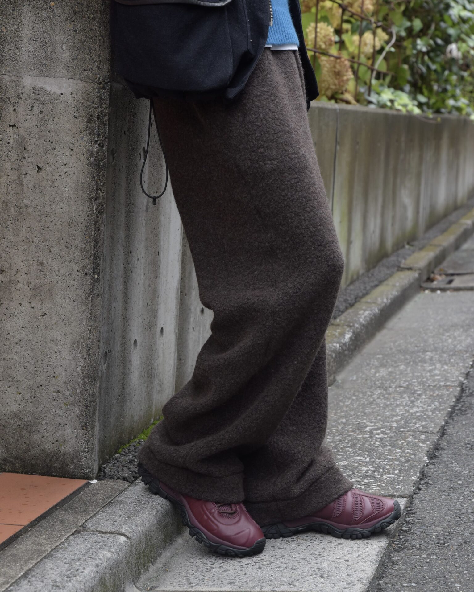 パンツも同生地のウールボアフリースを使用したワイドシルエットで作られています。