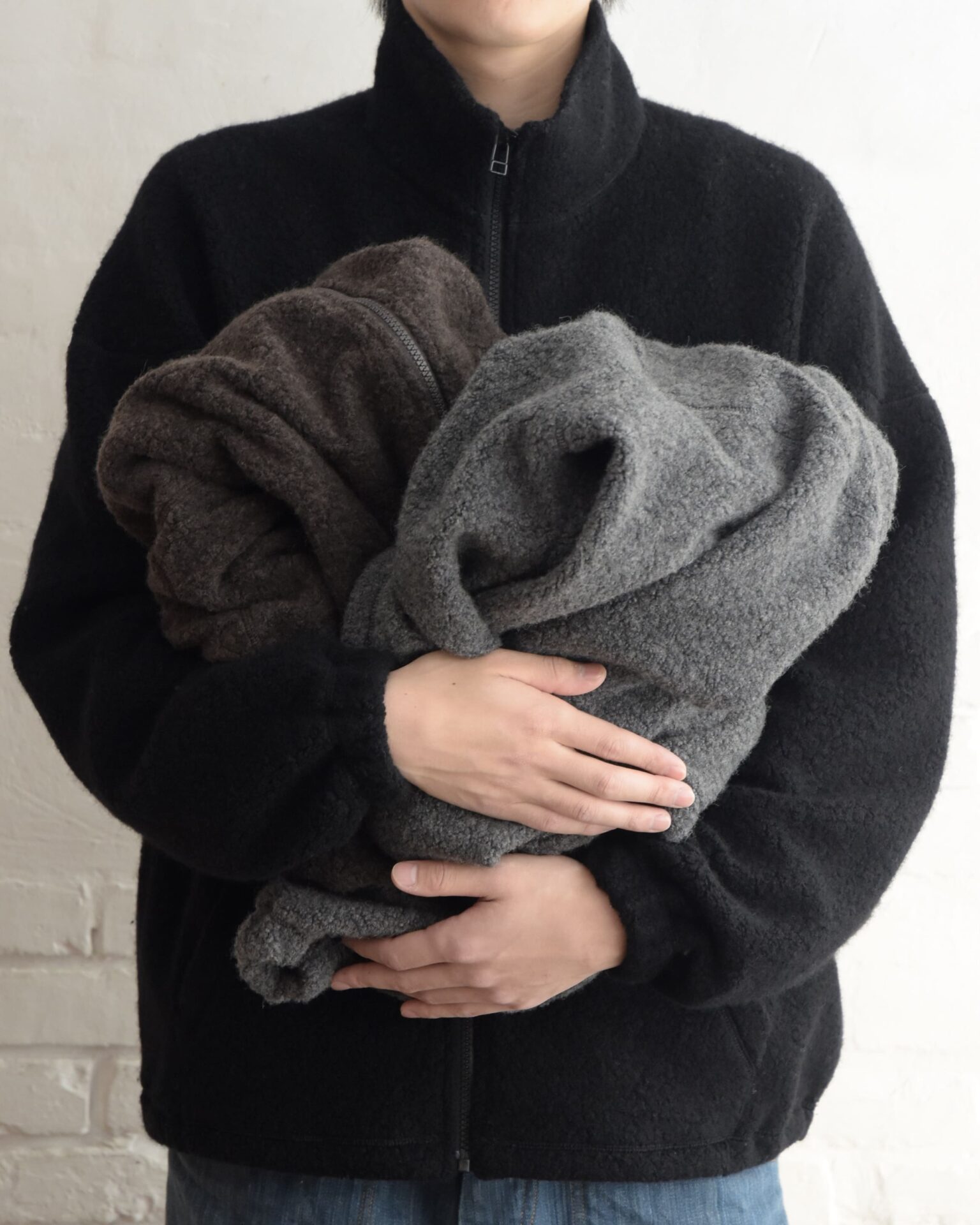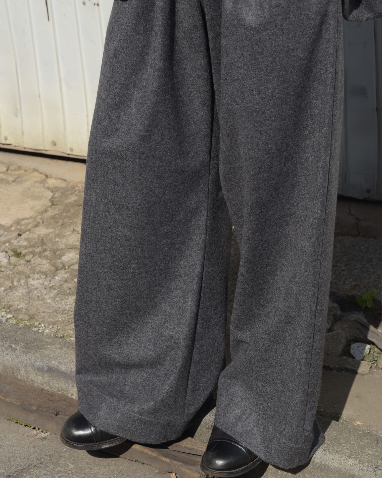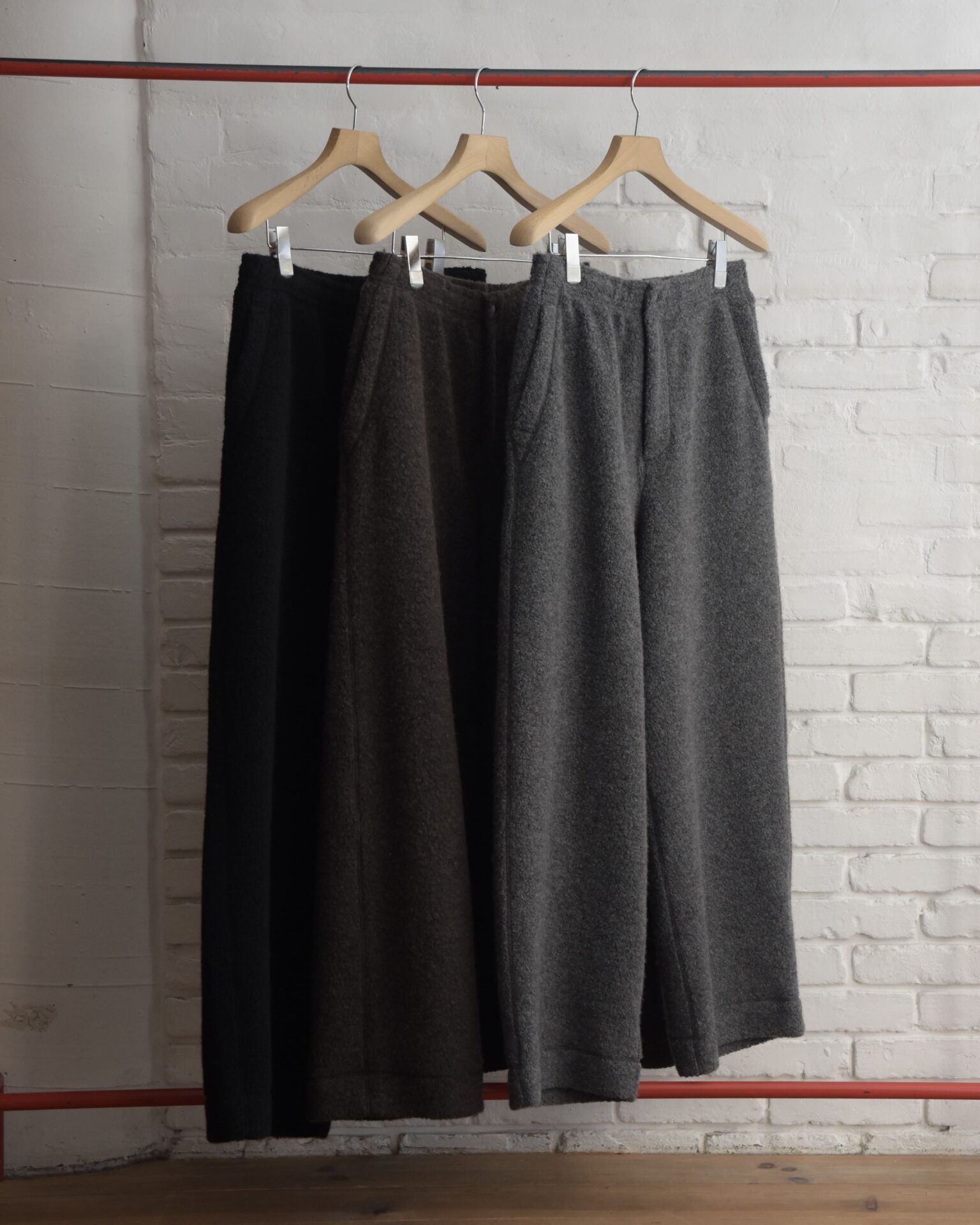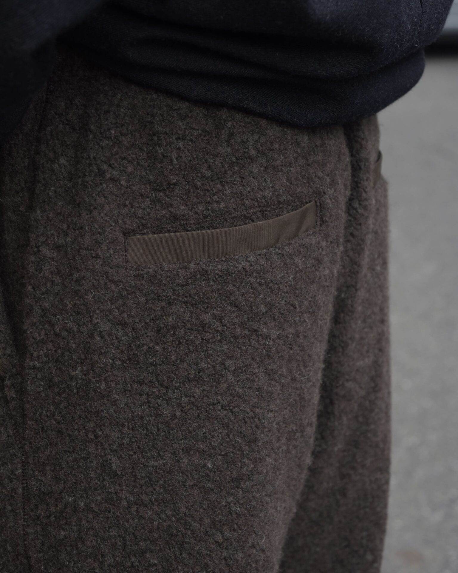 パンツも同生地のウールボアフリースを使用したワイドシルエットで作られています。