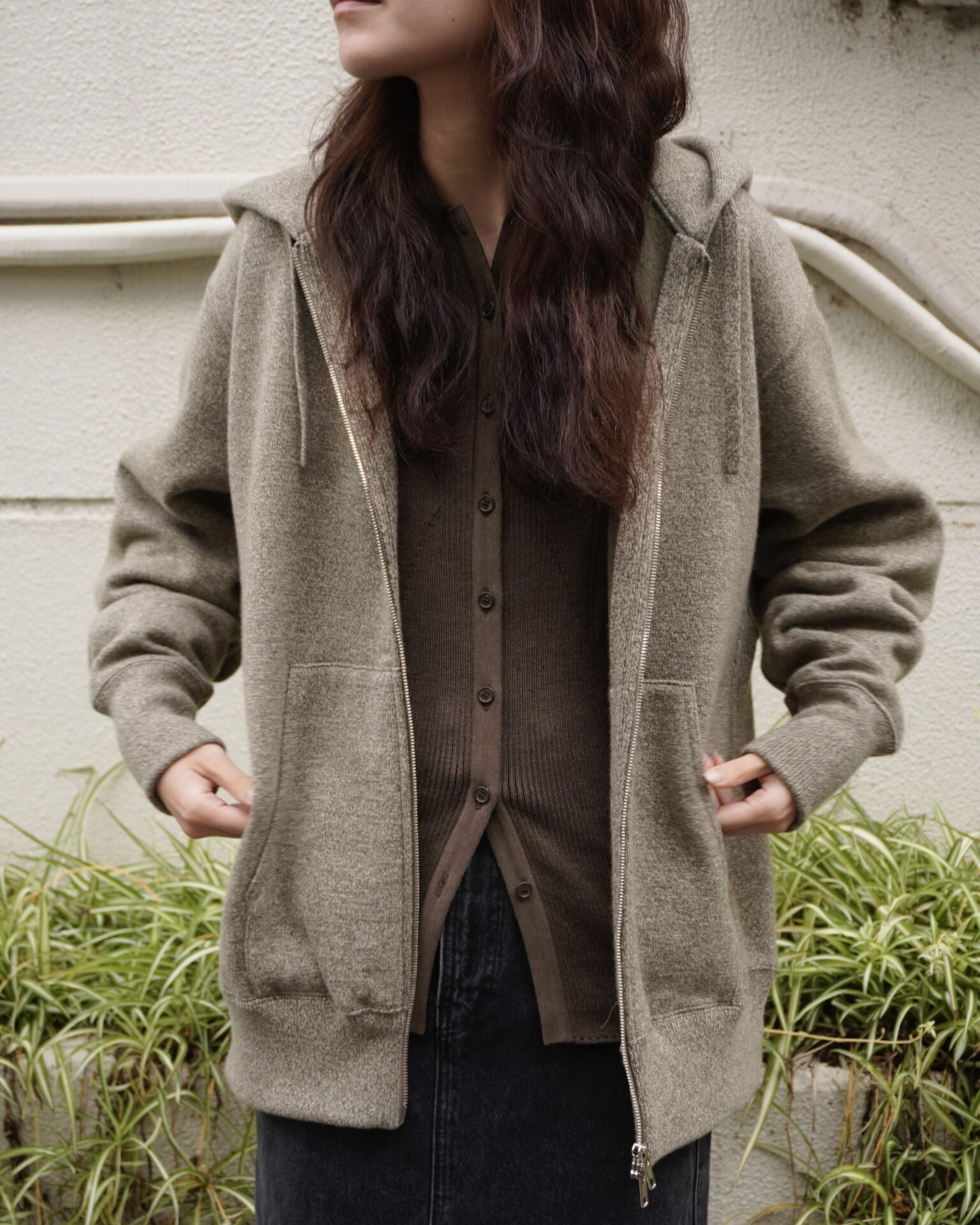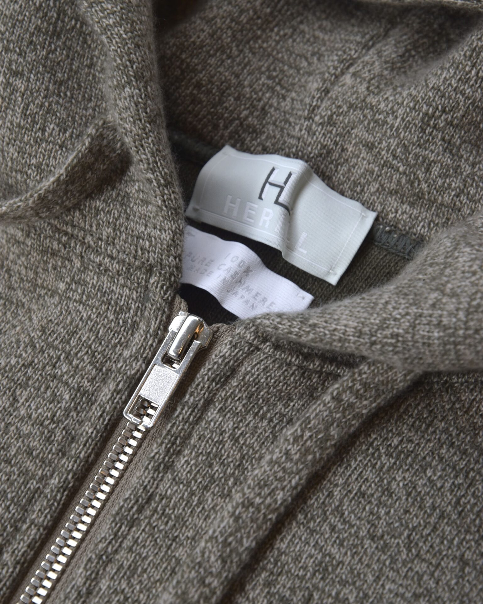 HERILLのゴールデンキャッシュシリーズから出てきた新作のカシミヤ素材のジップフーディーになります。