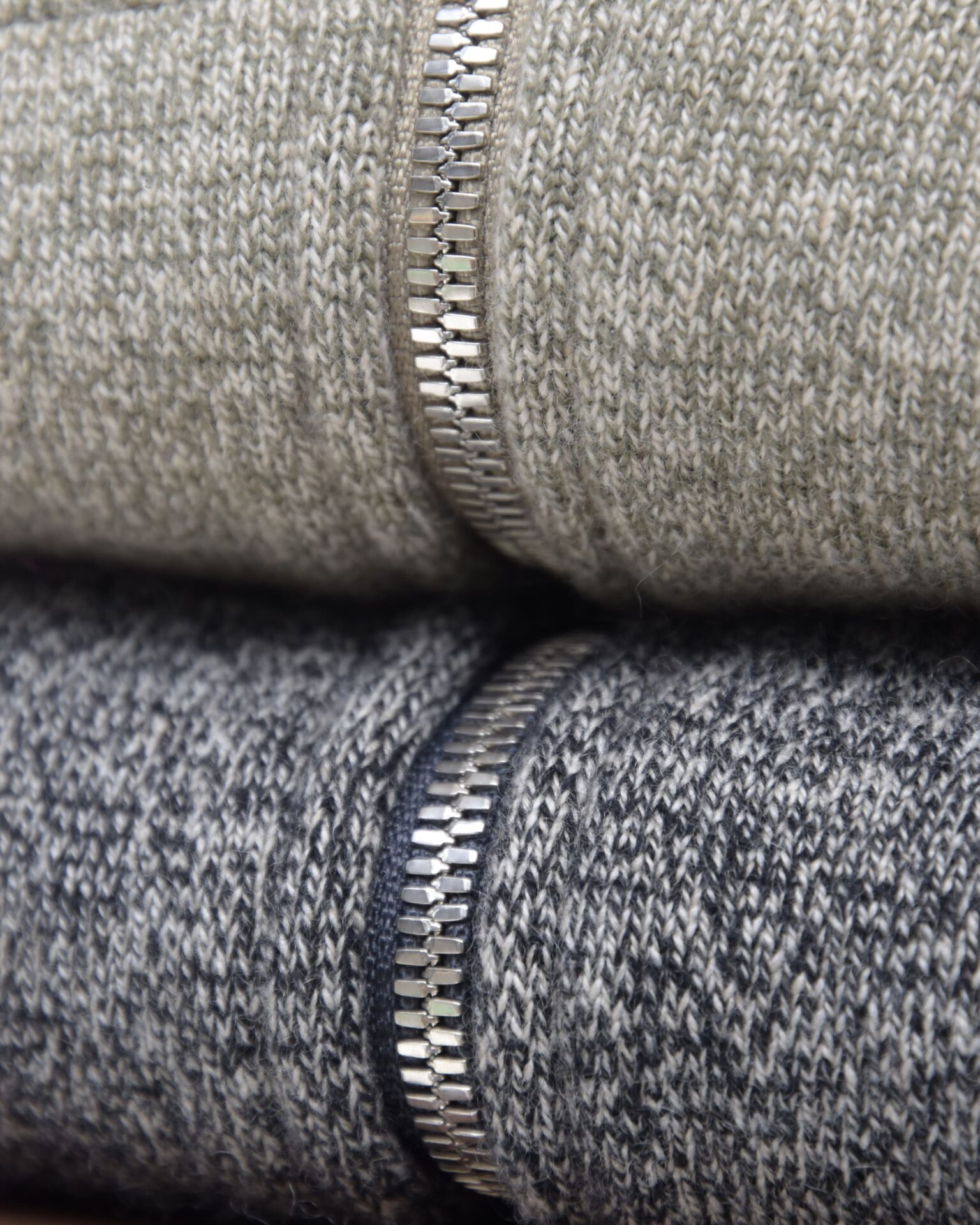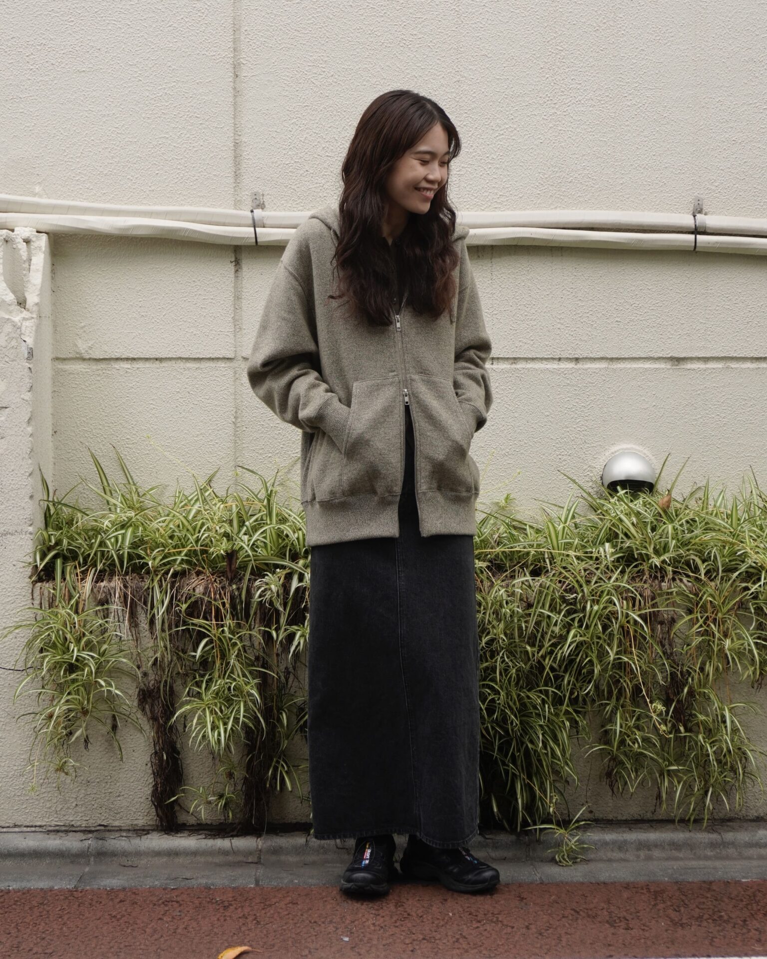 ゴマシオのような無骨さからダンディーな雰囲気、クールで強い女性が着こなす艶やかな色気さえ感じてしまうGrayと、一見トレンドとは程遠く街中のおじさんがデニムに合わせている景色まで見えてくるような玄人好みなOlive。