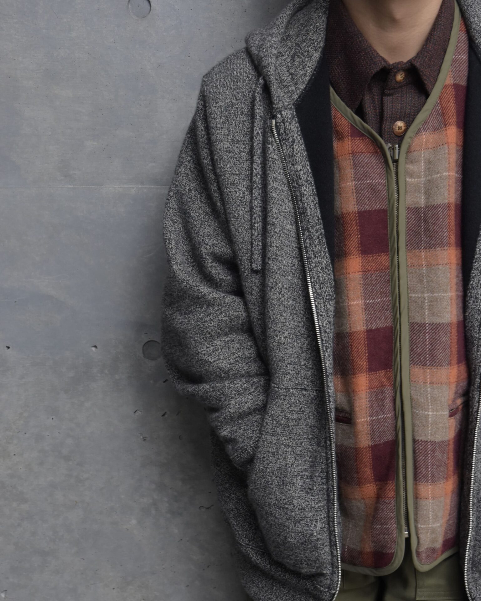 今週のような気温がまさに一枚でガバッと羽織れるオンタイム。アームも広く、さまざまなオンスのレイヤードにも対応できます。昨年に引き続き今シーズンもフルジップでガバッと羽織れるサイズ感、ドローコードをちょい絞りが良い塩梅かと。