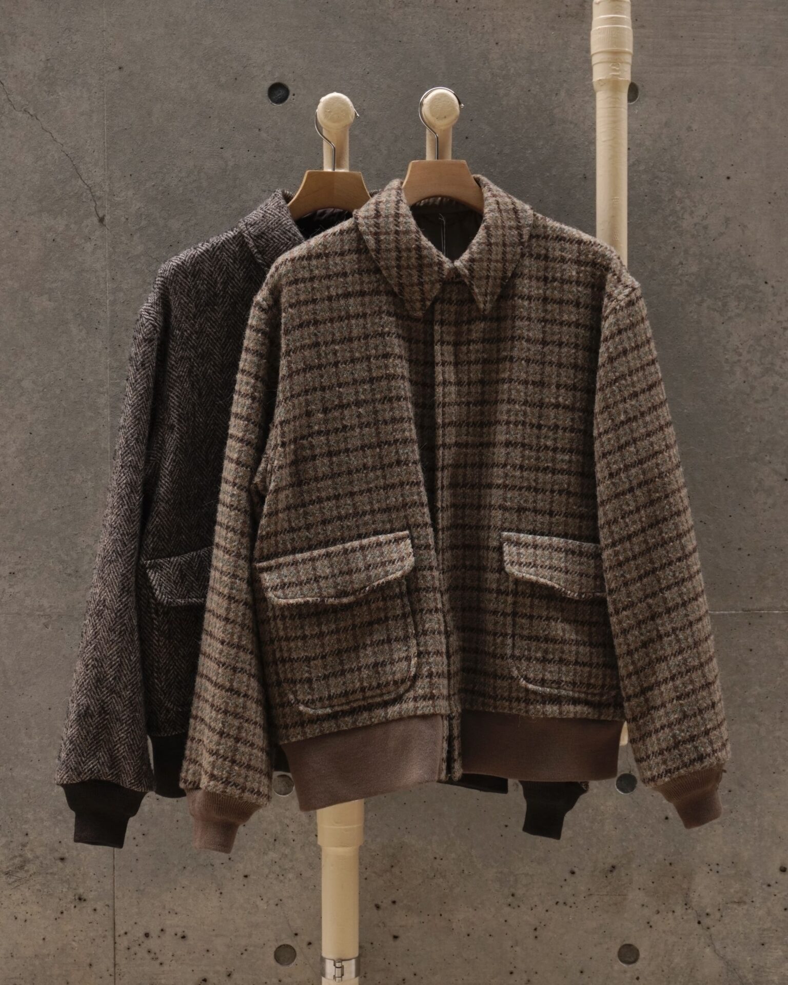 ジャケットの型は1960年代から80年代にアメリカで流行したダービージャケットを用いており、肩の切り替えデザインとラグランスリーブが特徴です。