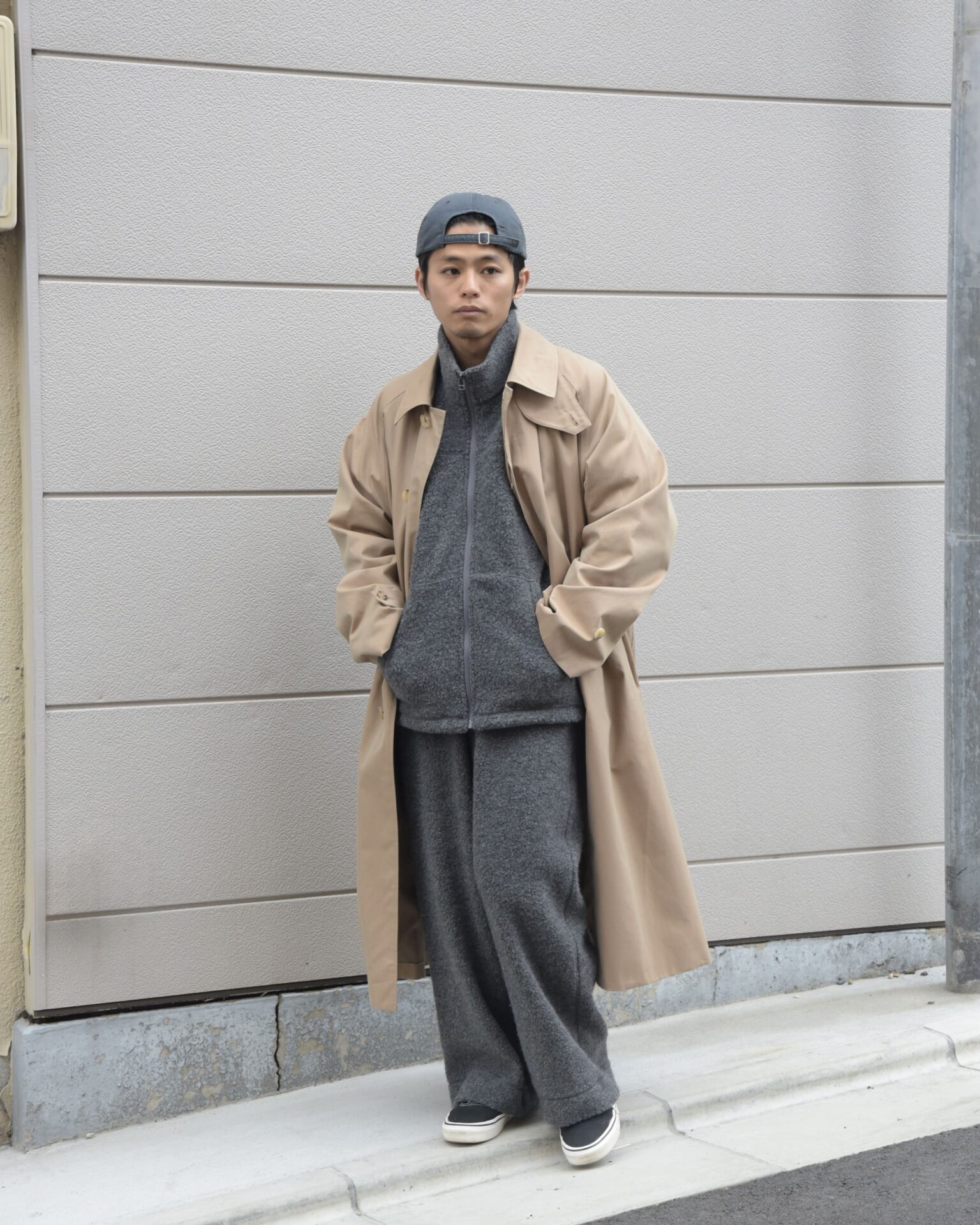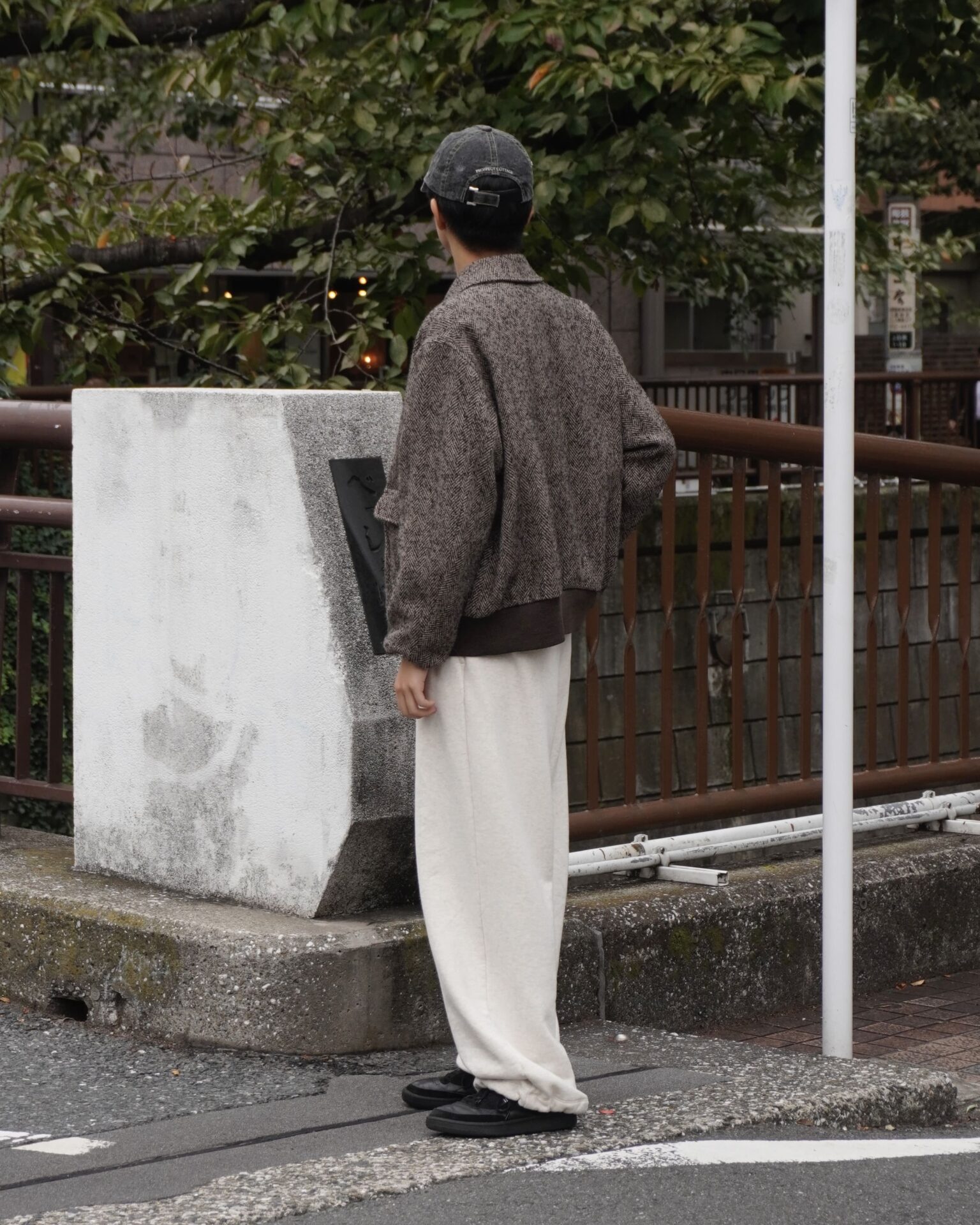 スウェットの延長で、上下のセットアップもスウェットほど緩くなり過ぎず、且つ生地感もこのシーズンならではの表情で奥行きがお楽しみいただけます。