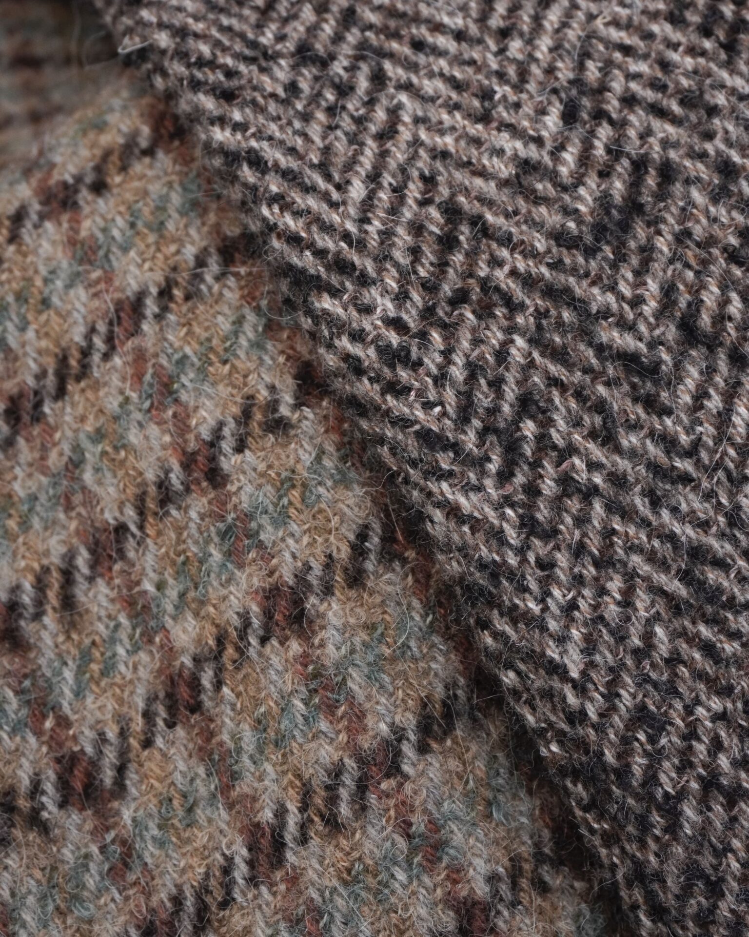 元来厚手のウール100%が用いられていましたが、年を経るにつれウールの厚みや裏地の有無でシーンに応じた着用方法へと変化していきました。