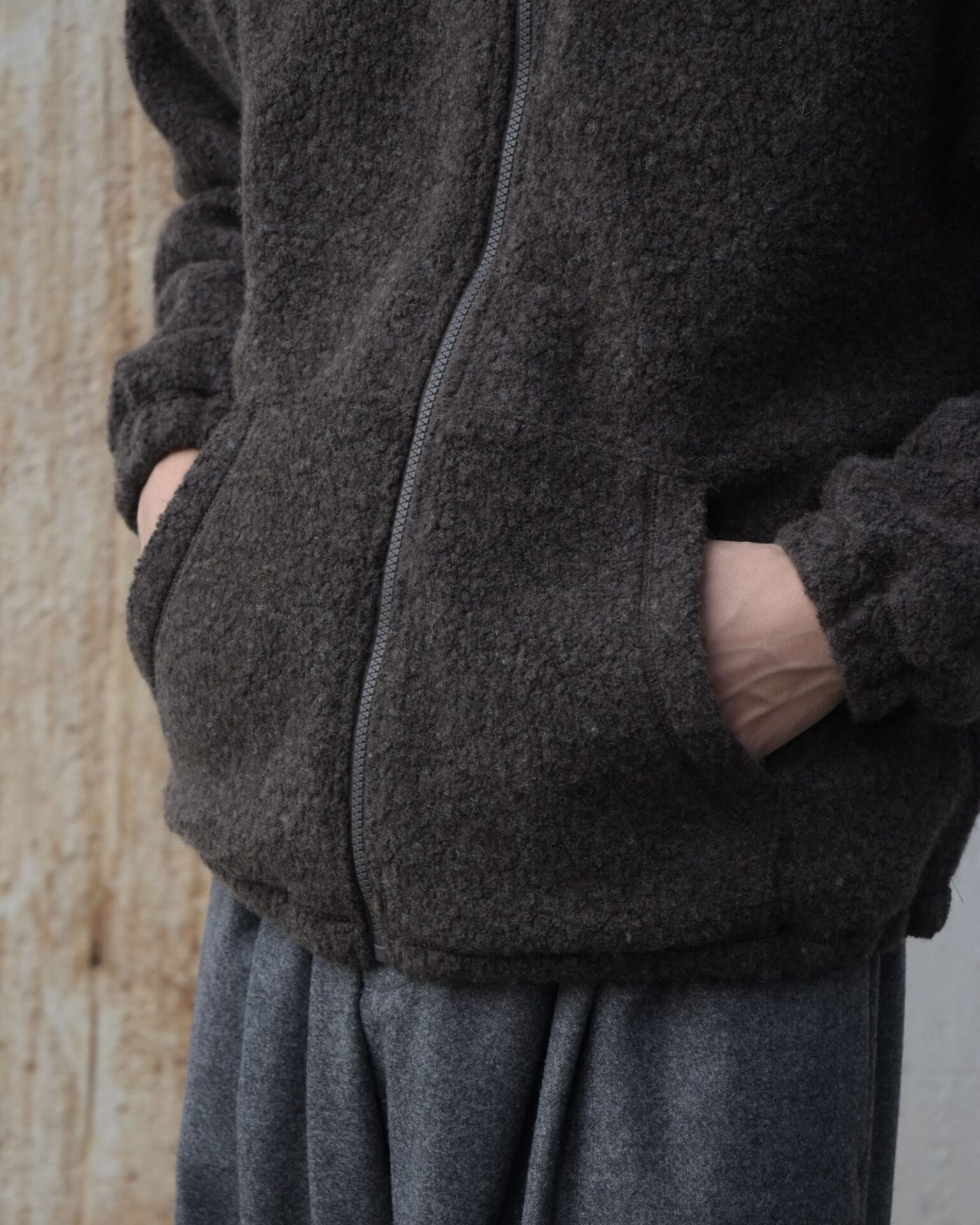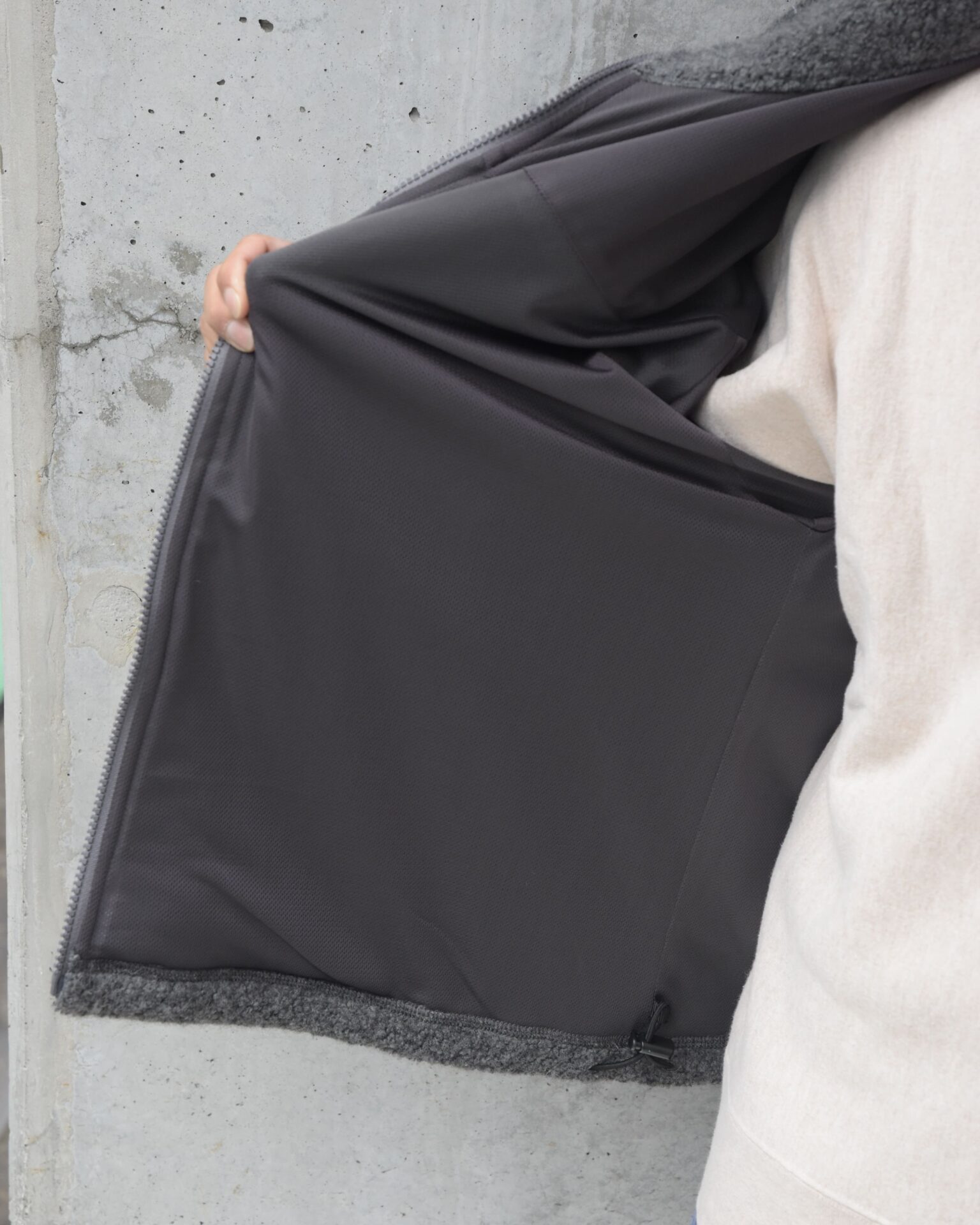 また、ストリートカルチャーを象徴するアイテムとして人気を博したこの形を、フリース生地で作ることでワークと都会的な印象のいいバランス感でお楽しみいただけます。