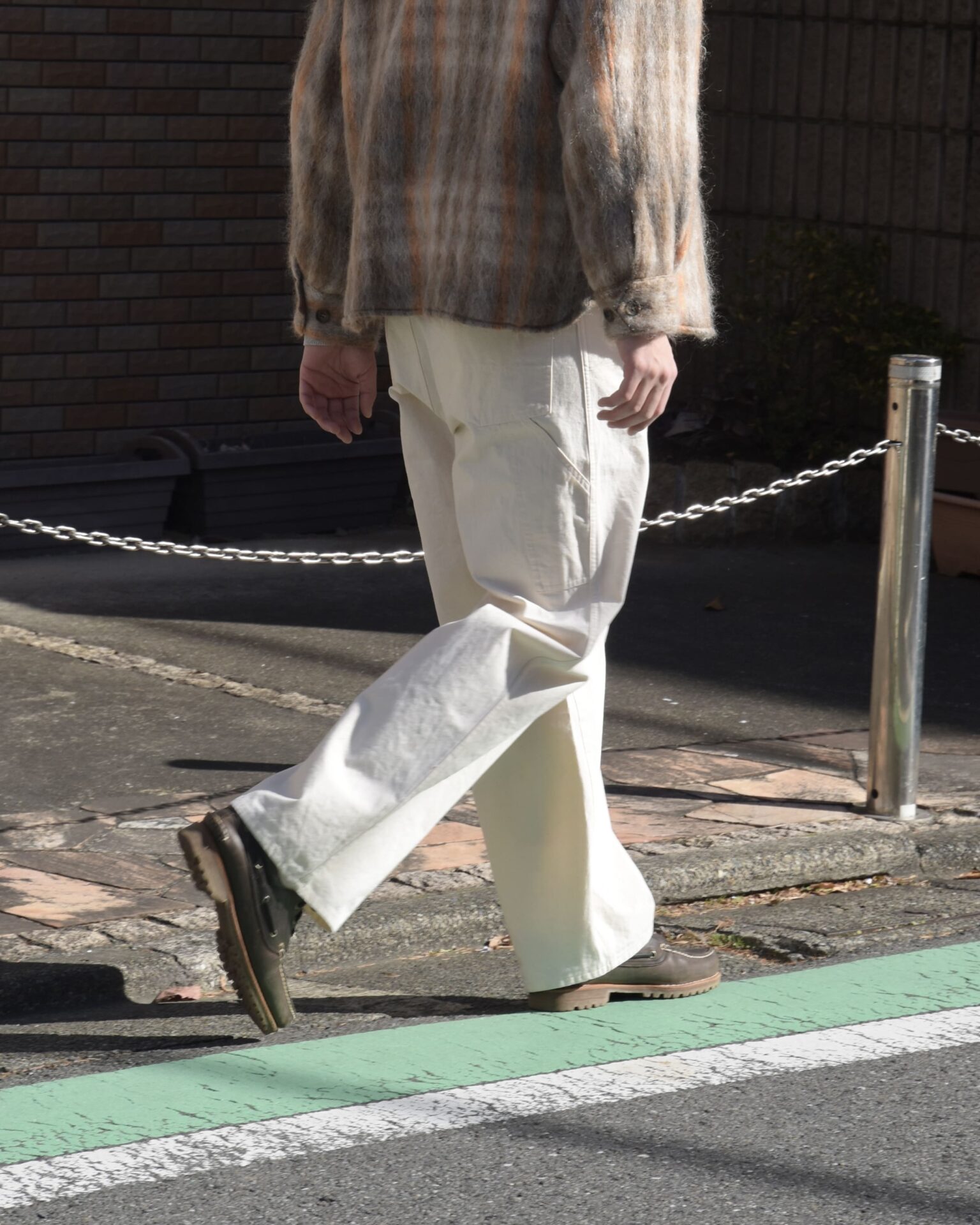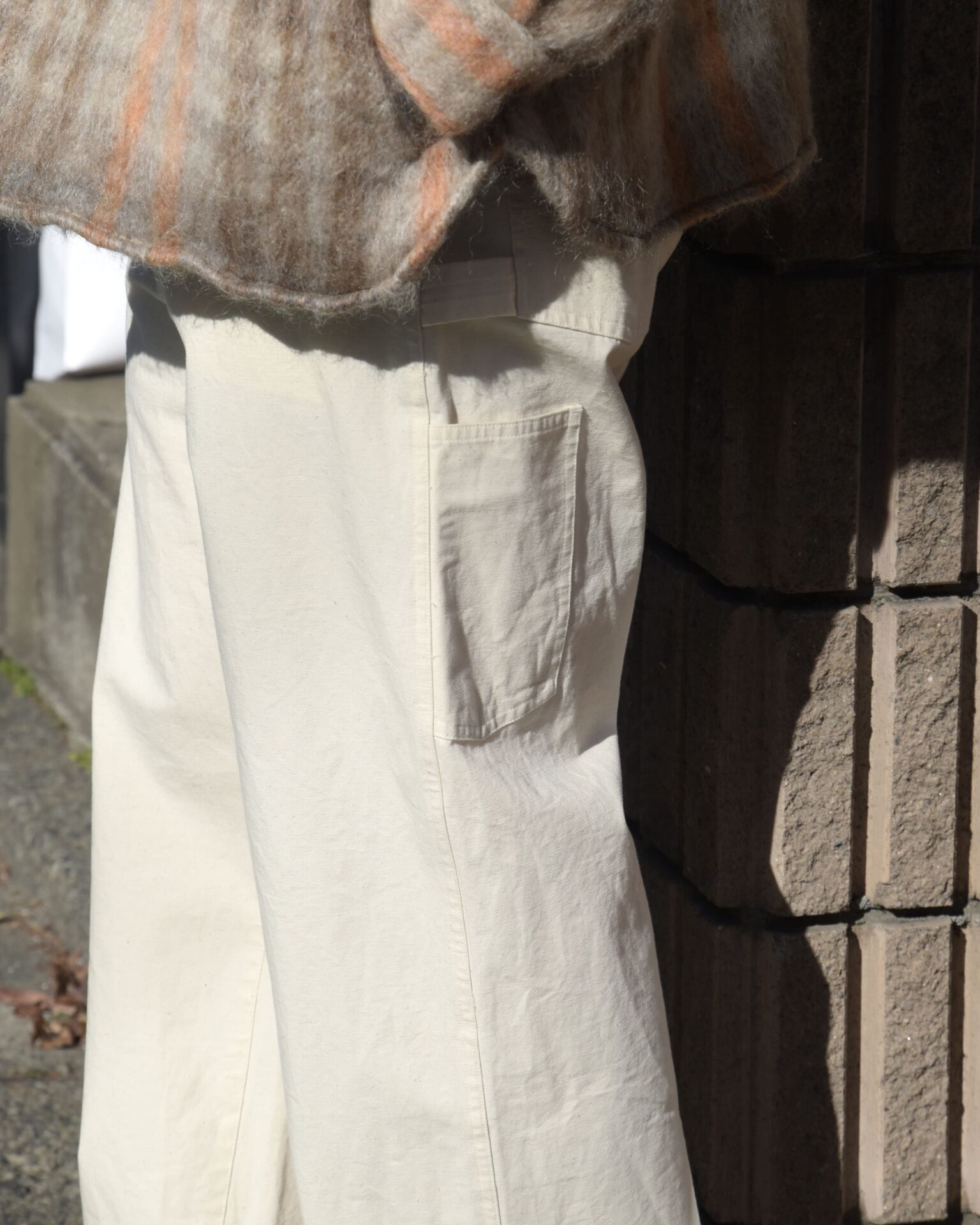ワイドめなシルエットですが、腰回りは比較的身体に沿うようなスッキリとしたパターンなので、所謂ワーク系になり過ぎないのも使いやすい点です。