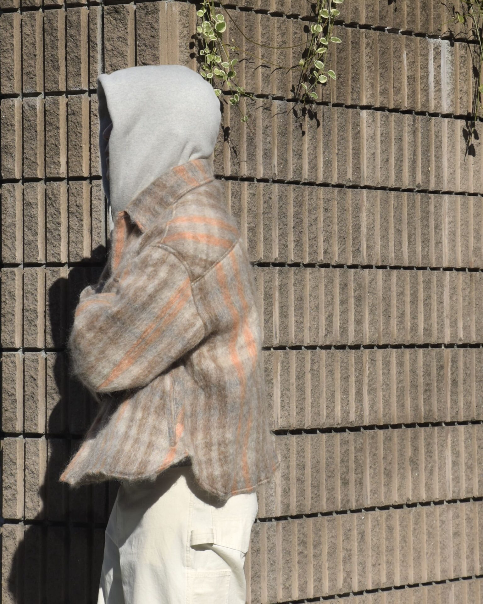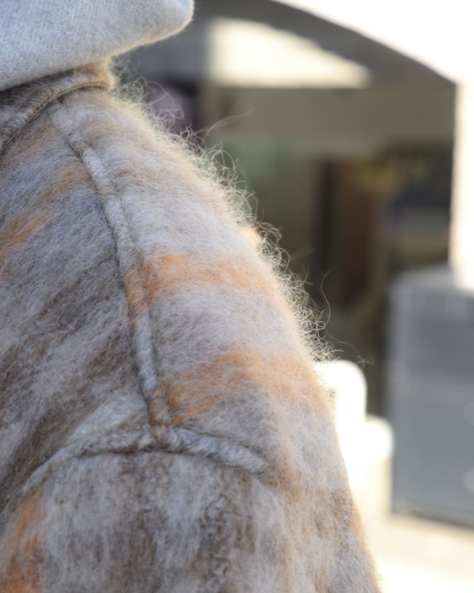 だいぶふわっふわのモヘアが特有の軽さと保温性に加え、柔らかい印象を与えてくれています。