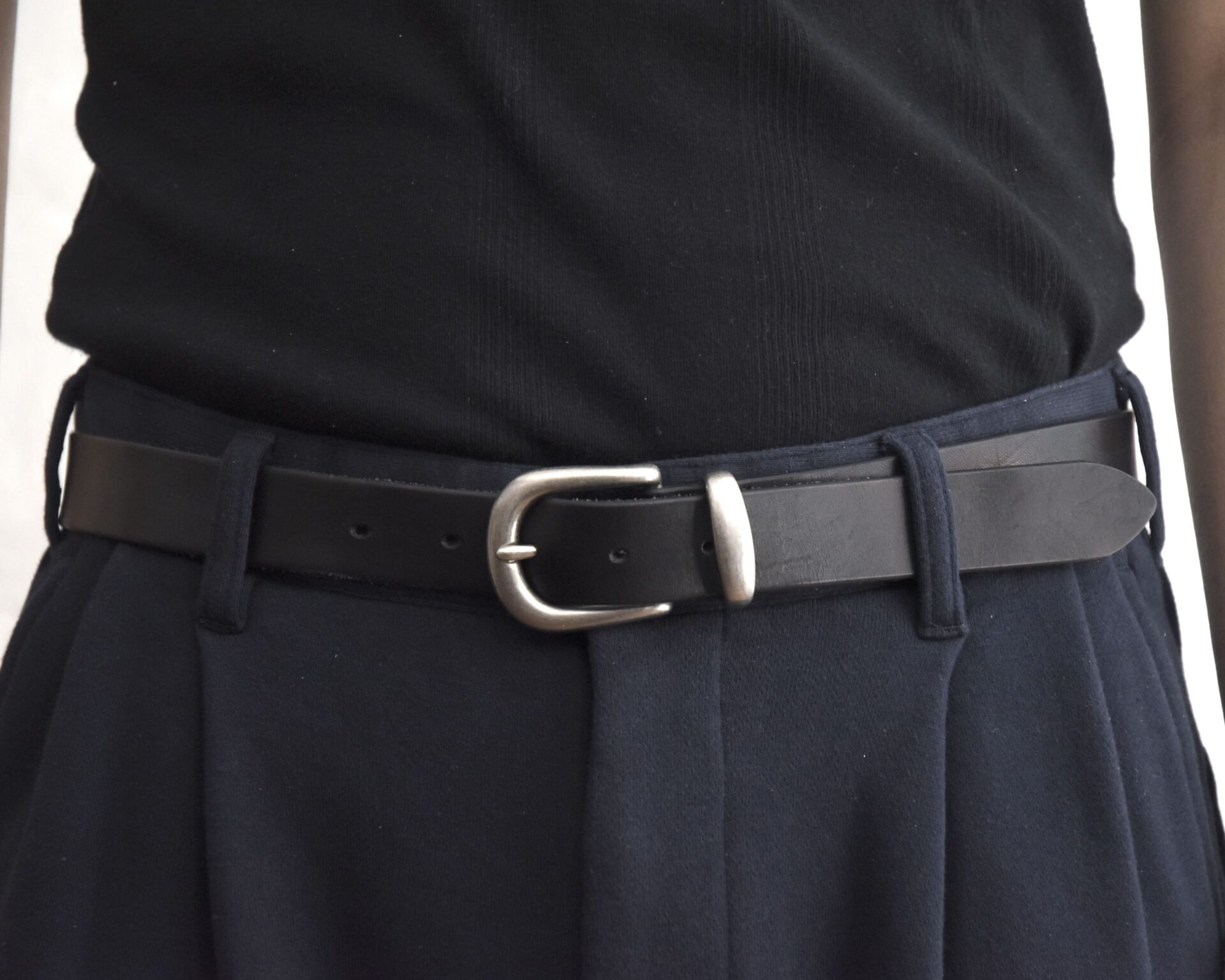 こちらはデザイナー本人の蒐集物にあったNorth & Judd社の40年代のバックルをベースに、バランスを再設計したレザーベルトです。