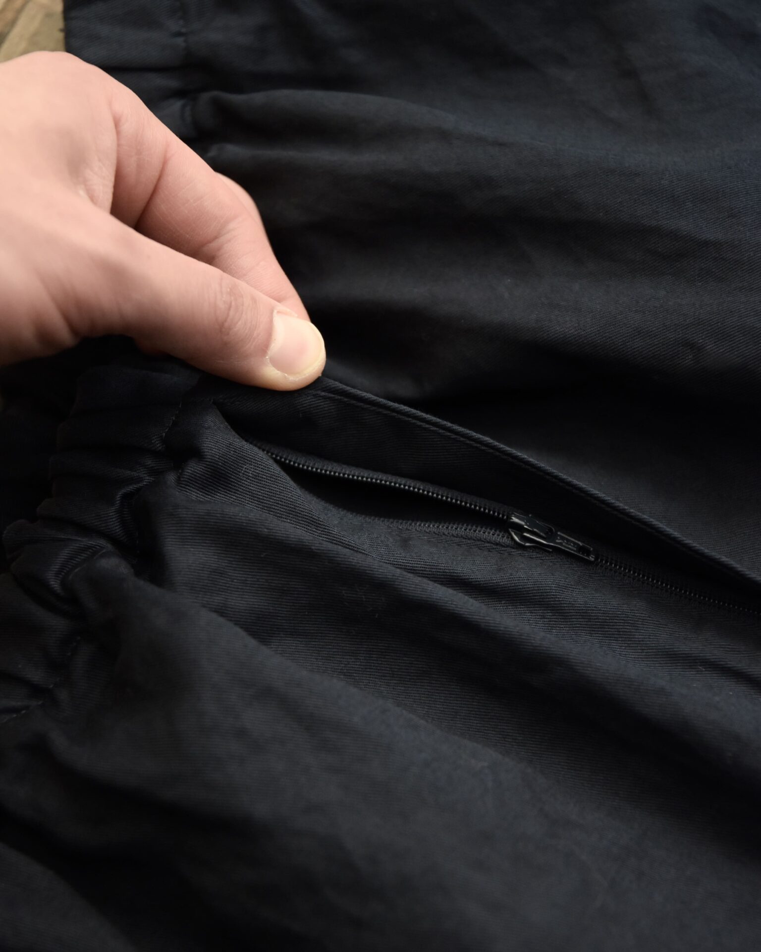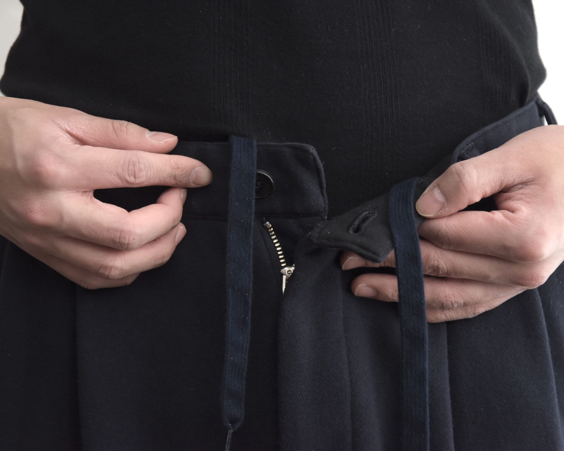 ウエストはゴム+ドローコード付き。それでいてジップも付属。