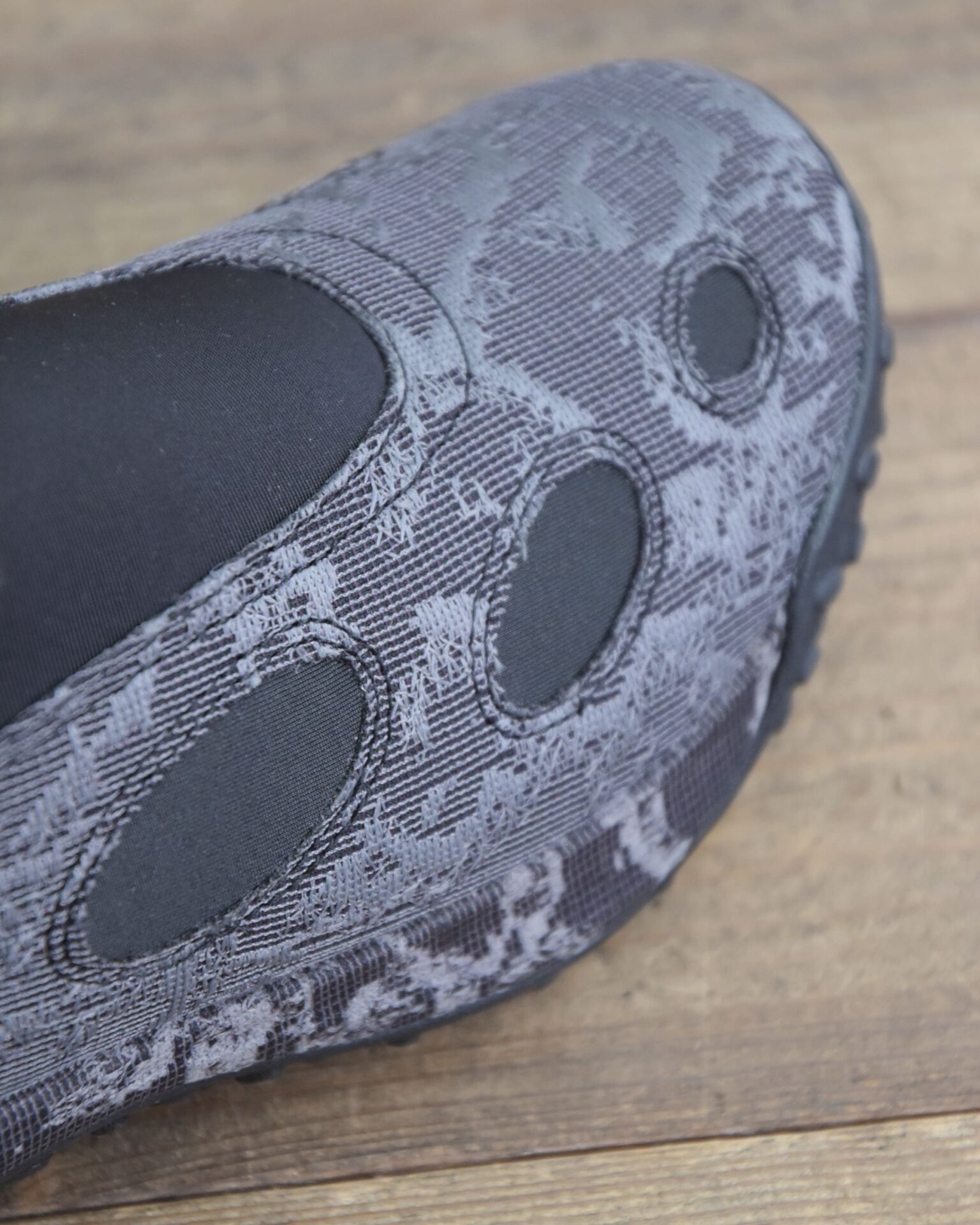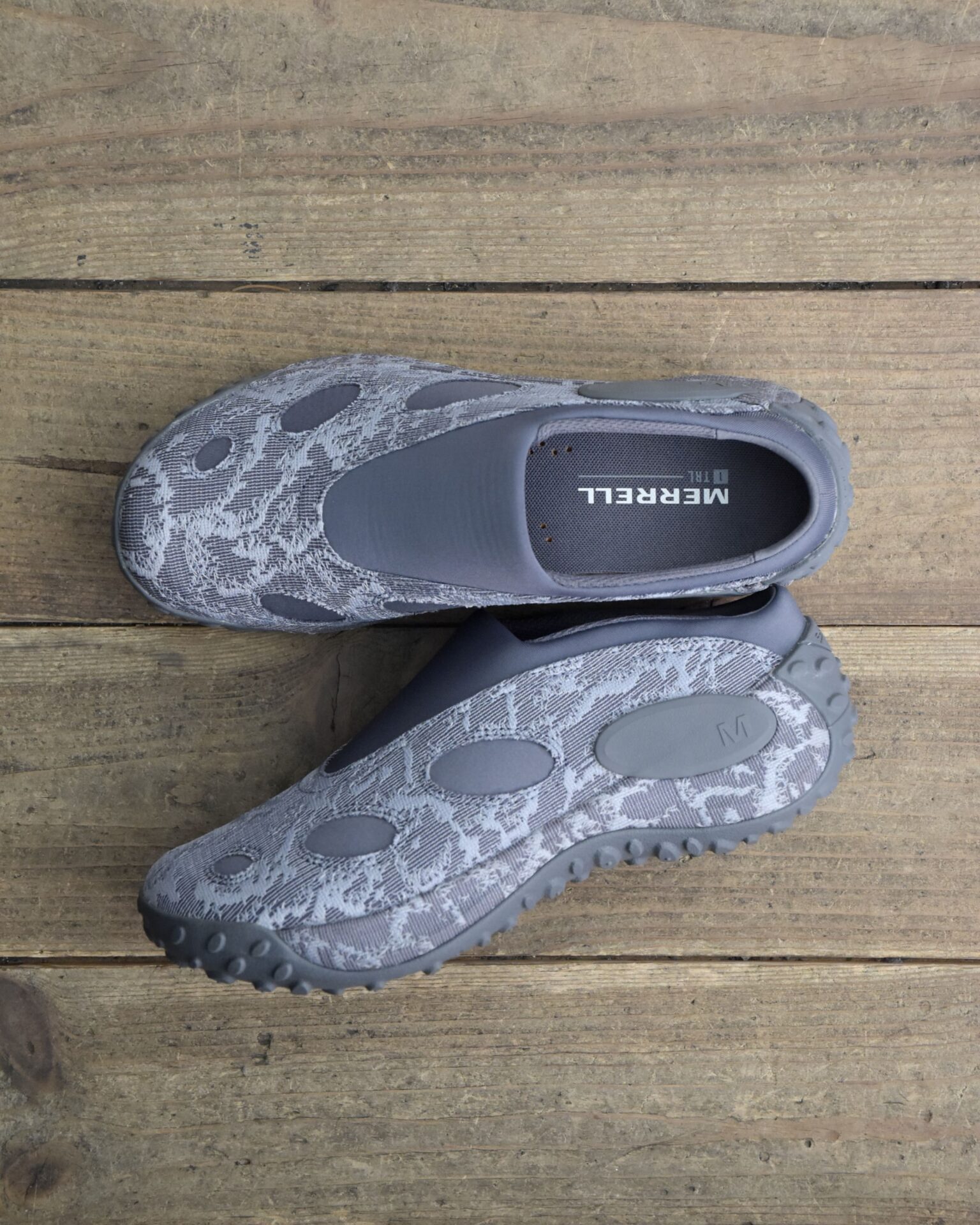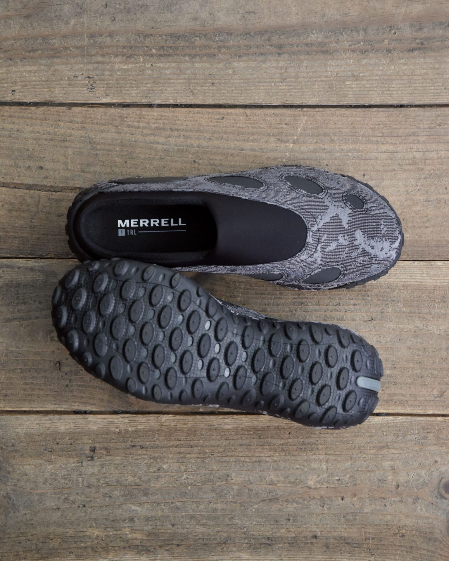 アッパーには通気性に優れたメッシュを採用し、今シーズンのMERRELL 1TRLコレクションを象徴する「2 Tone Torn Camo(迷彩モチーフを分解・再構成したツートーン表現)」を重ねることで、視覚的な奥行きと動的な印象をプラスしています。