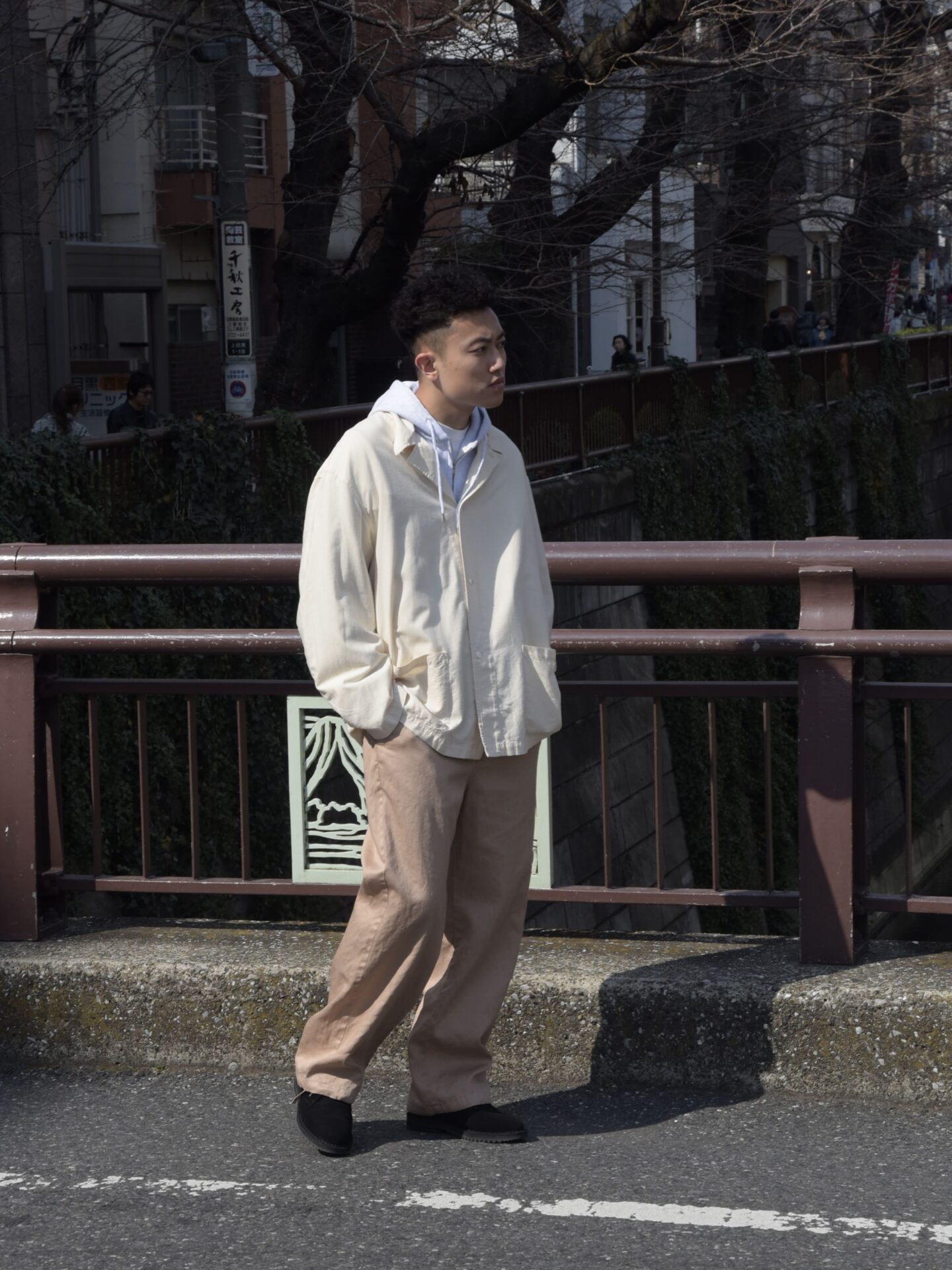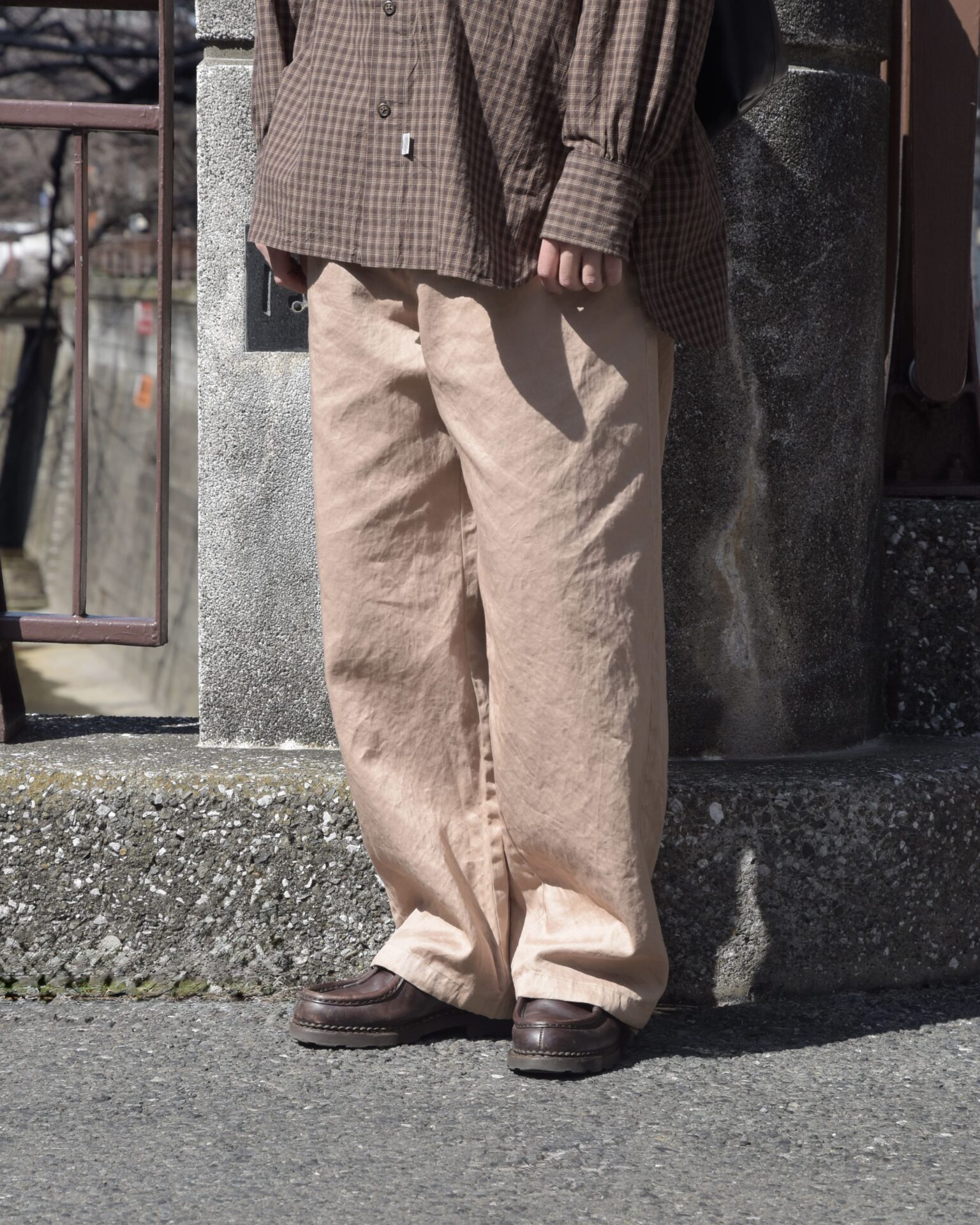 ここは新年、パリッとECRUを穿いてみました。
