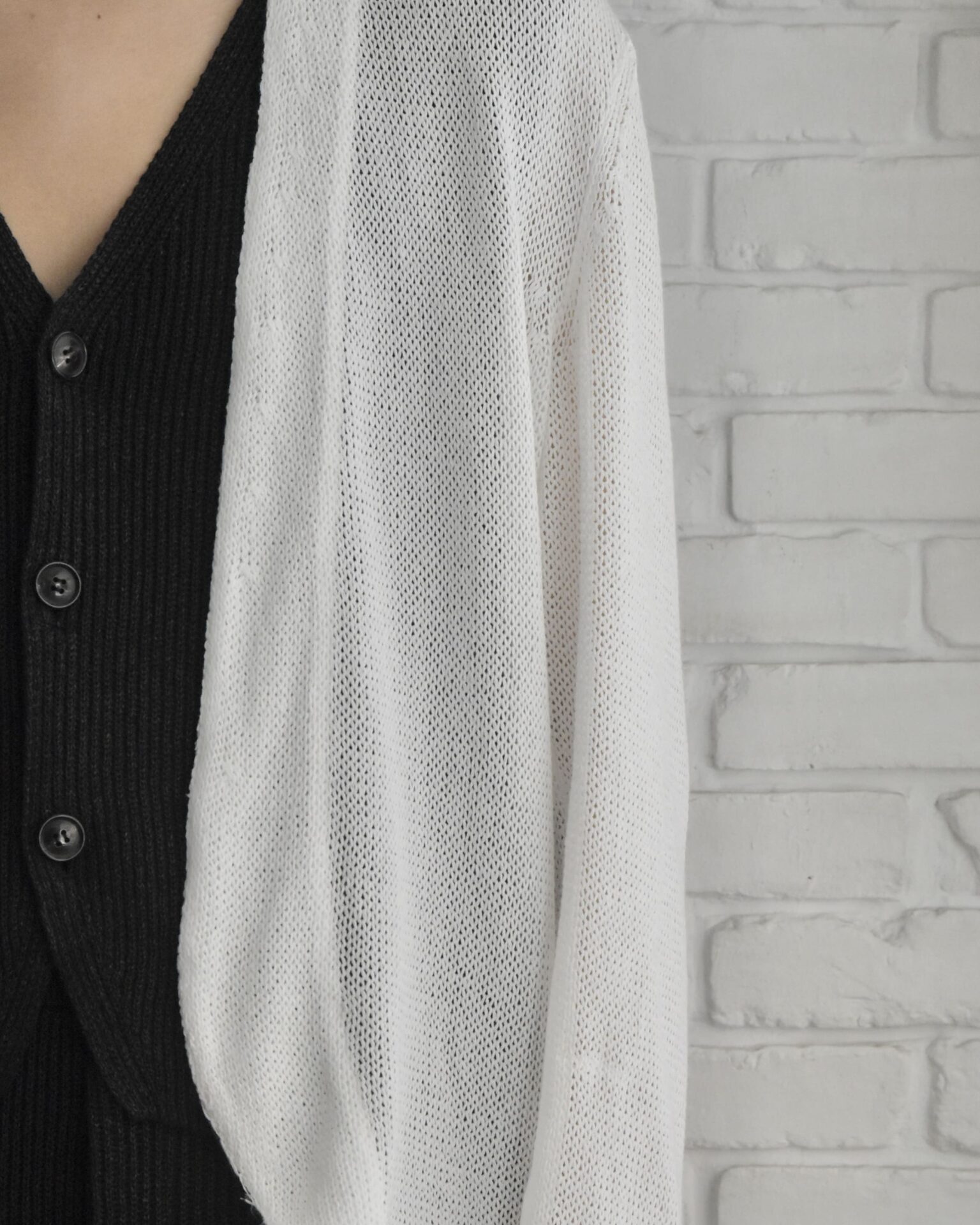 ジャケットといえど、スケスケ素材により春夏に重宝するカーディガンライク。