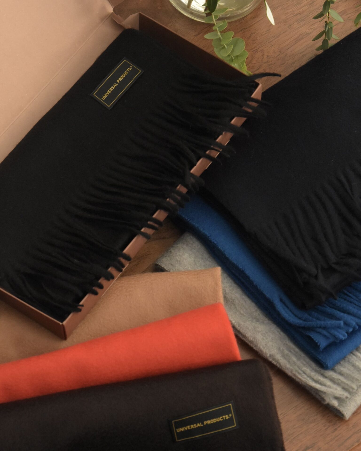 STOLE: UNIVERSAL PRODUCTS. “CASHMERE STOLE” ¥29,700 tax in