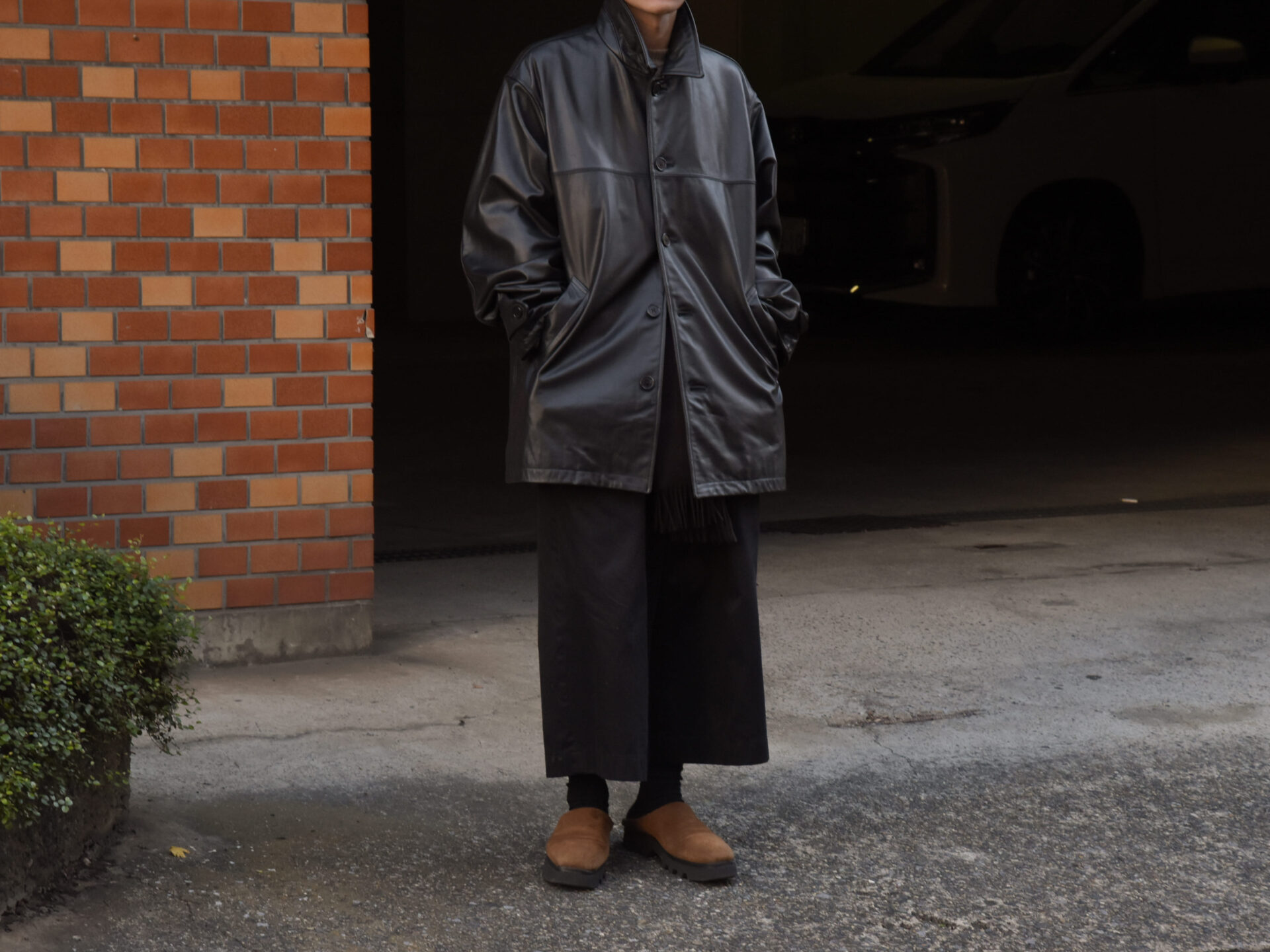 COAT: UNIVERSAL PRODUCTS. “LEATHER CAR COAT” ¥75,900 tax in