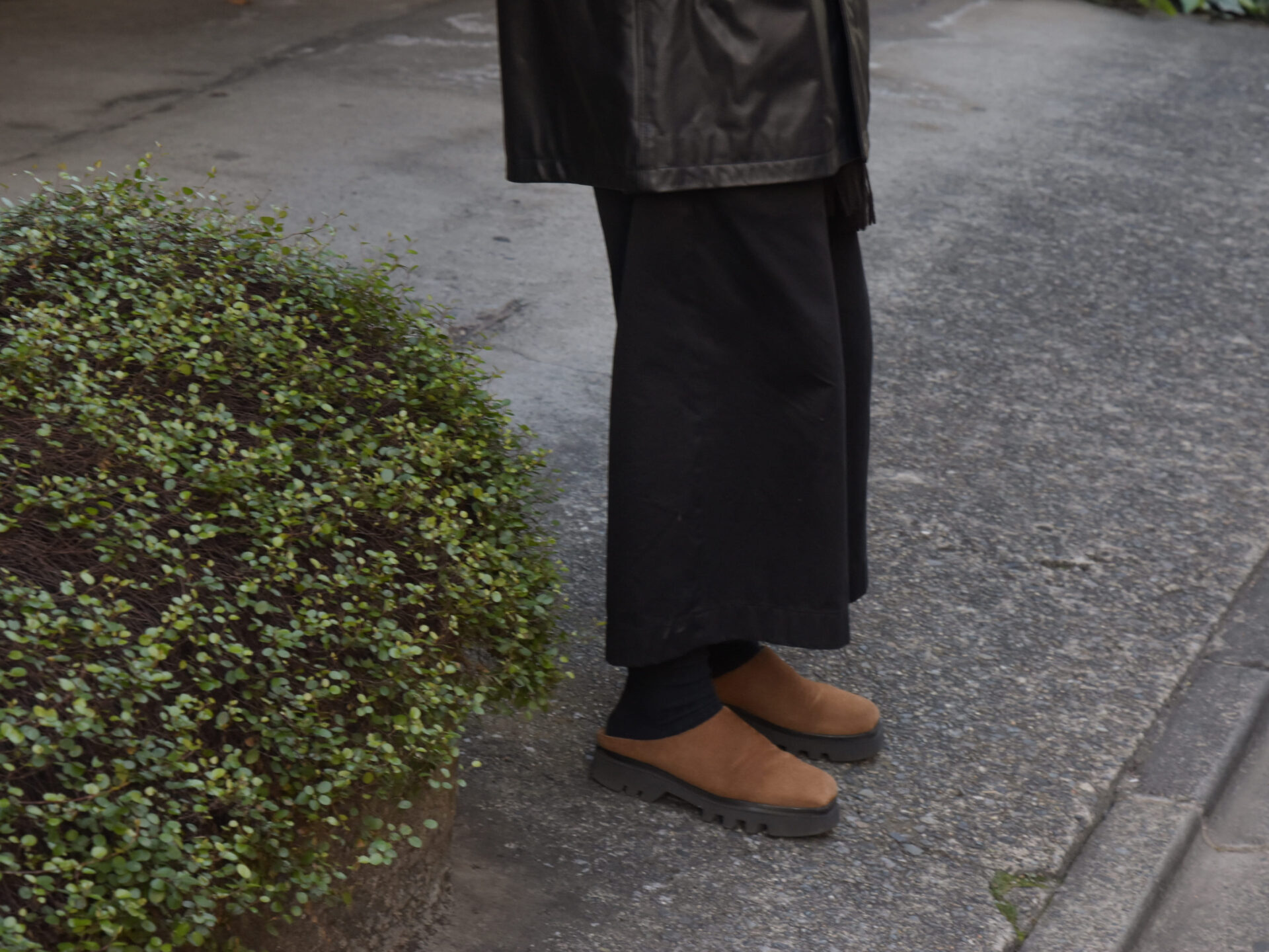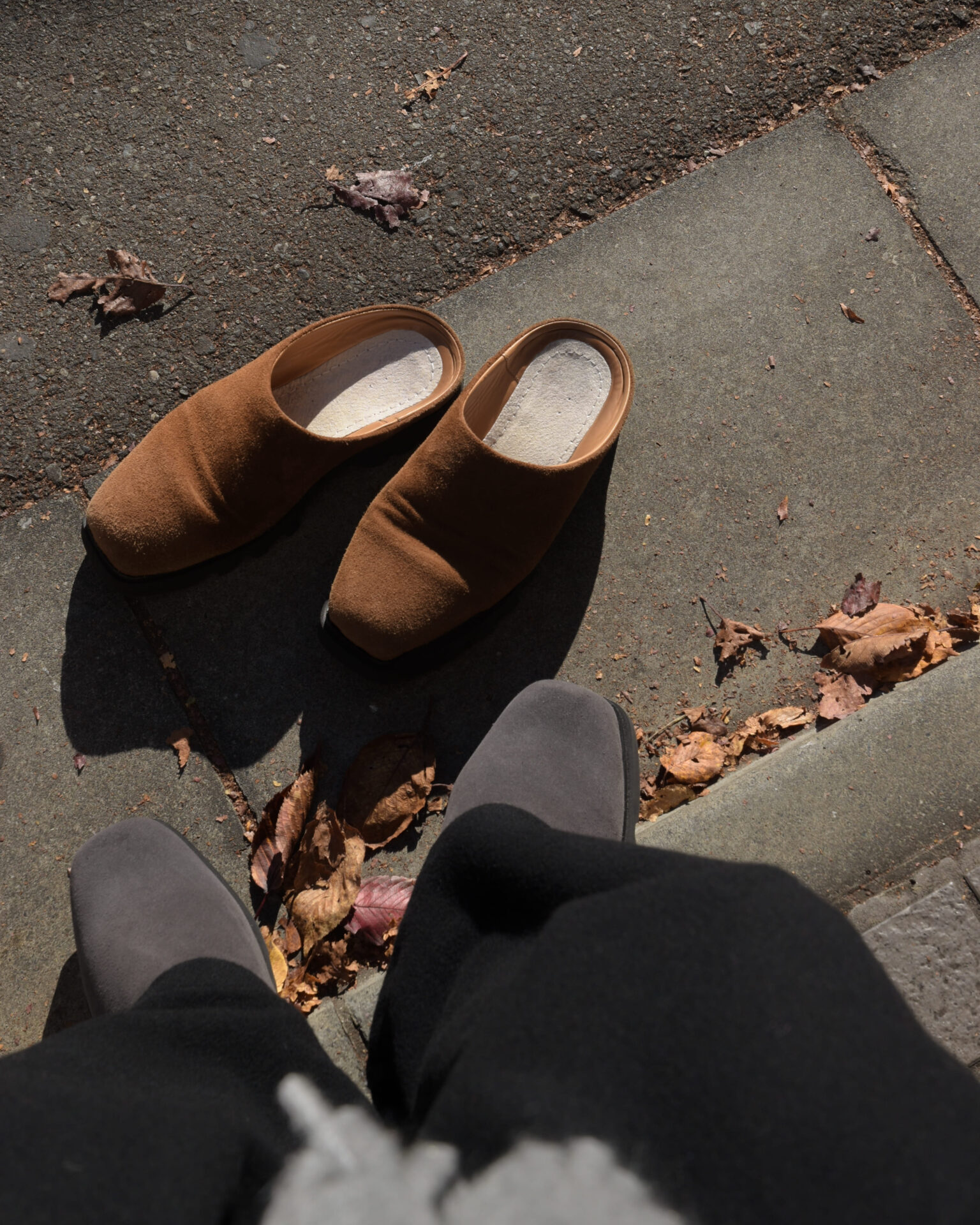 インソールはフッカフカ。僕は靴下に合わせて取ったり付けたり。この手のミュールはインソールの分厚さで履き心地も左右するため、自分で調整しています。
