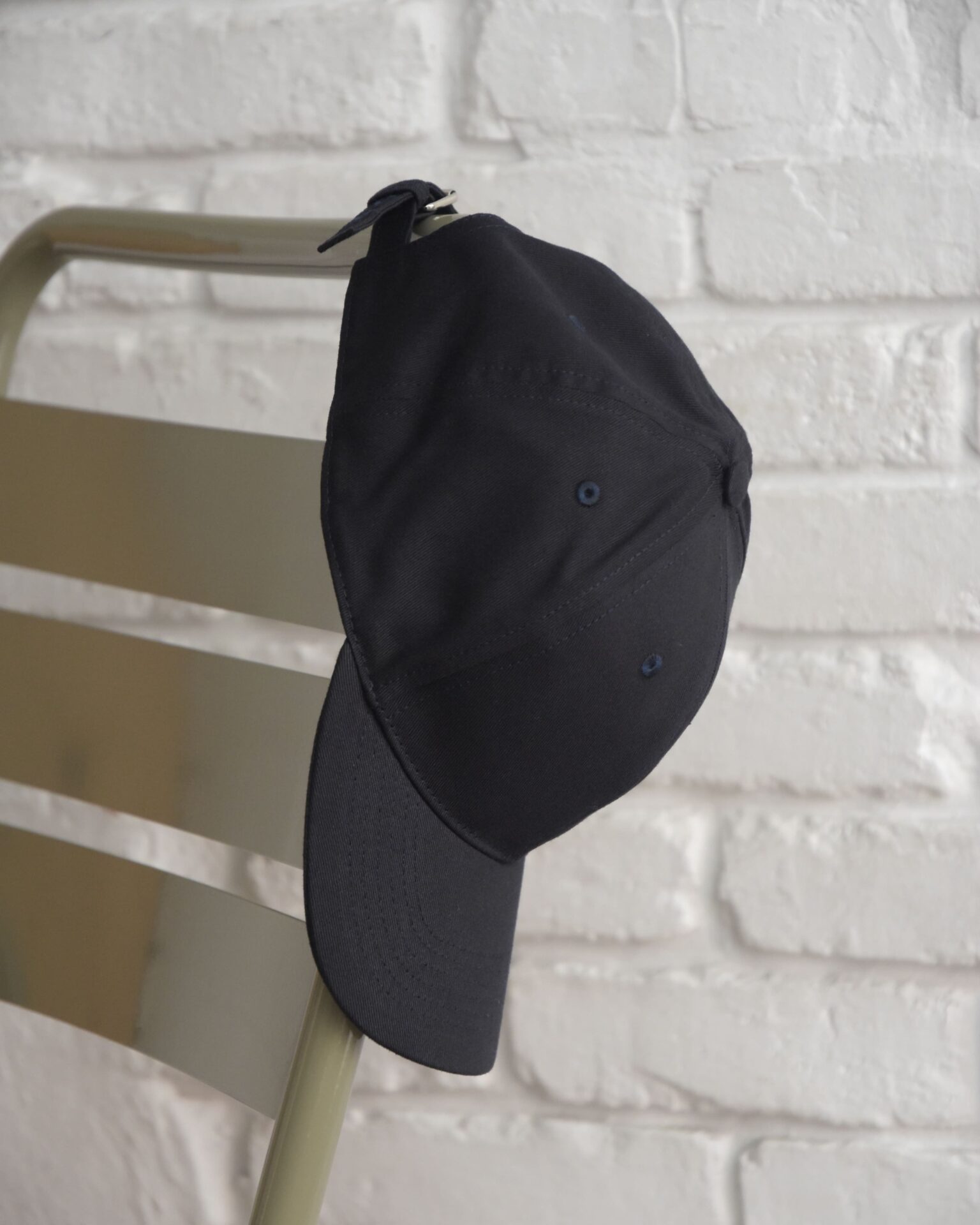 キャップは差し色にしたい派の方もいらっしゃると思いますが、この硬派なネイビーが良さとして伝わります。