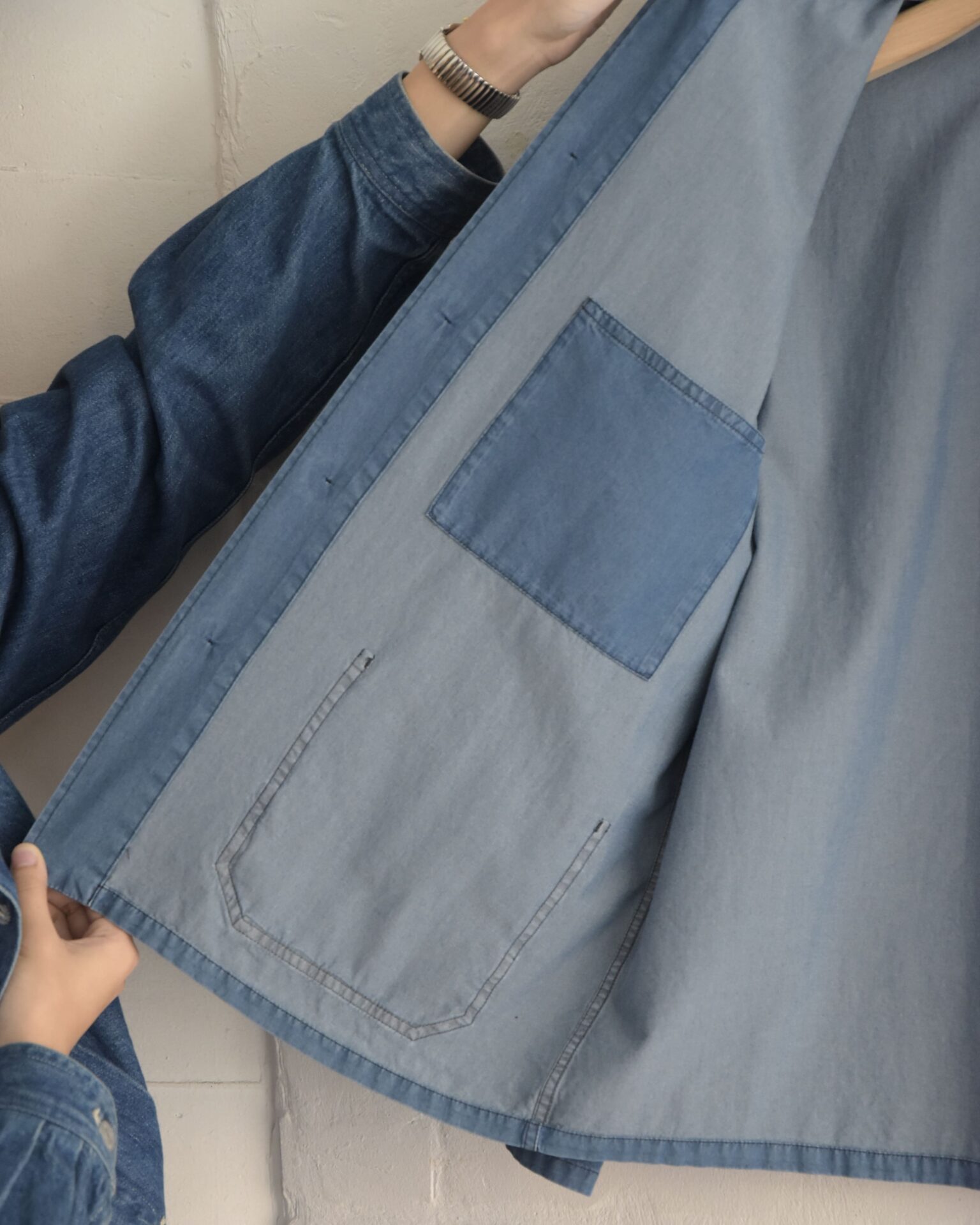 26SSではライトウエイトのイタリア製シャンブレー素材を使用して作られたワークジャケット。